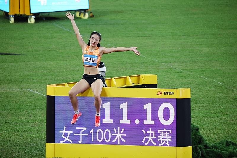 △田径女子100米决赛,陈妤颉夺冠,并刷新亚洲青年纪录。