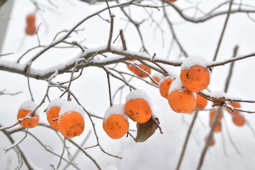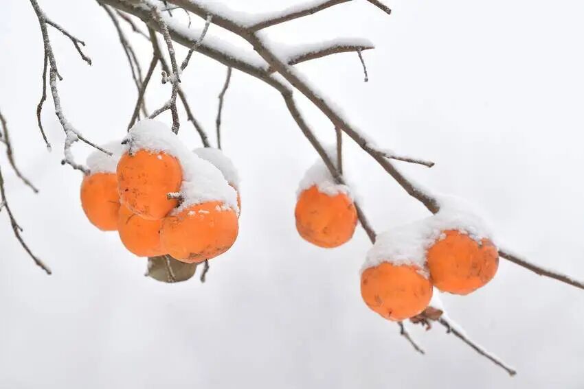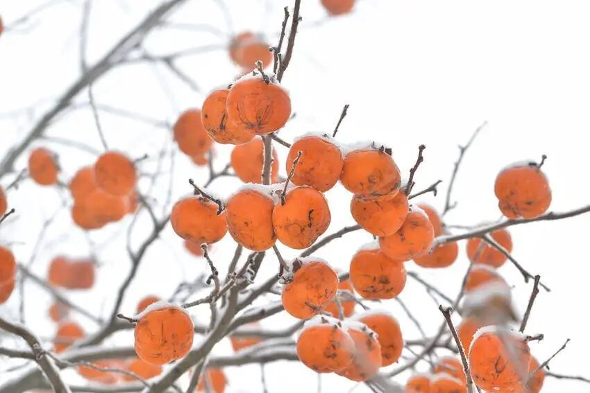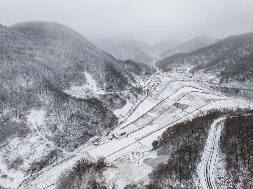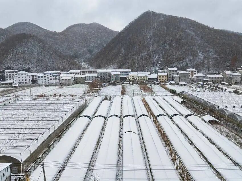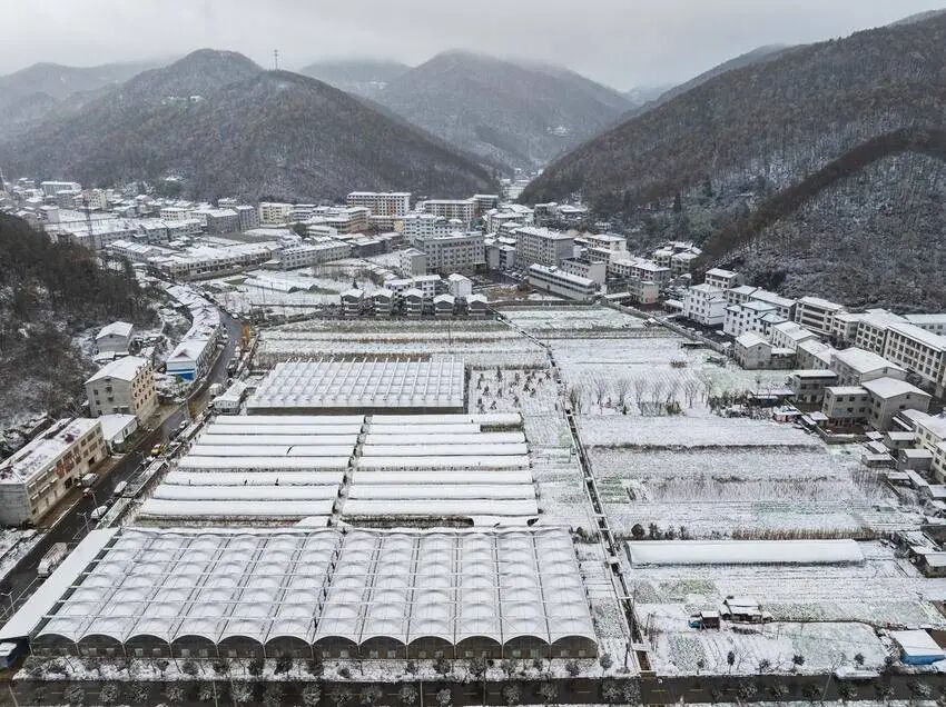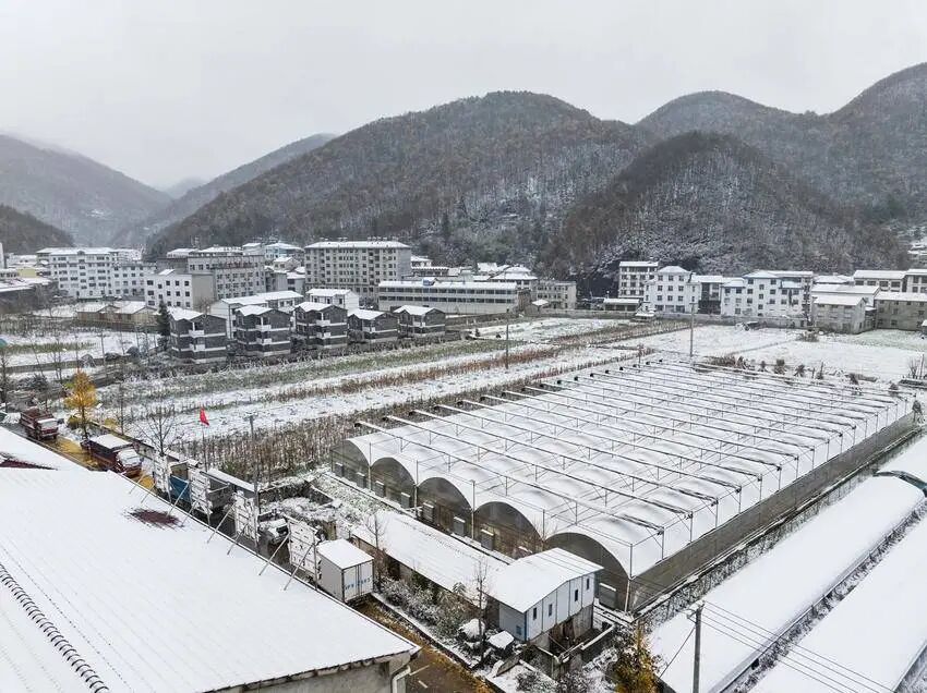 错落分布的屋舍顶着蓬松的皑皑白雪
