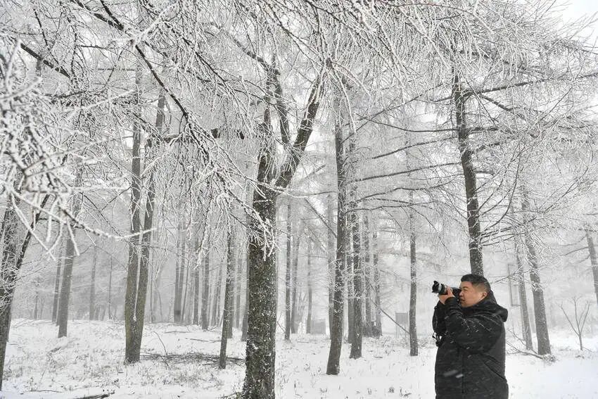 每一片挂雪的叶子都成了晶莹的自然艺术品