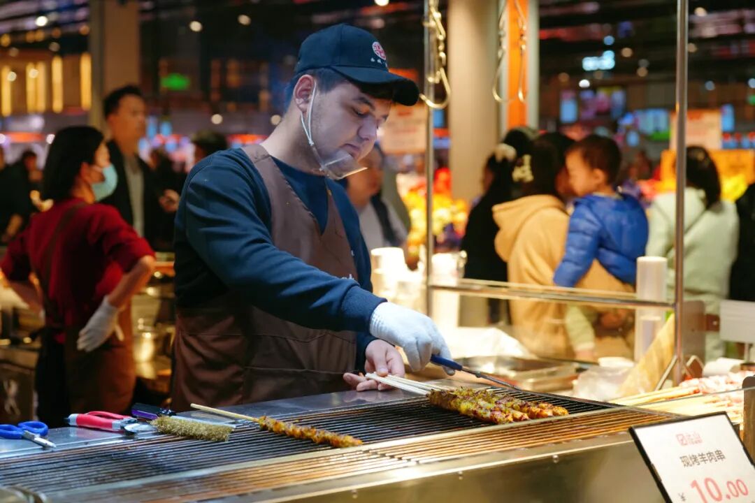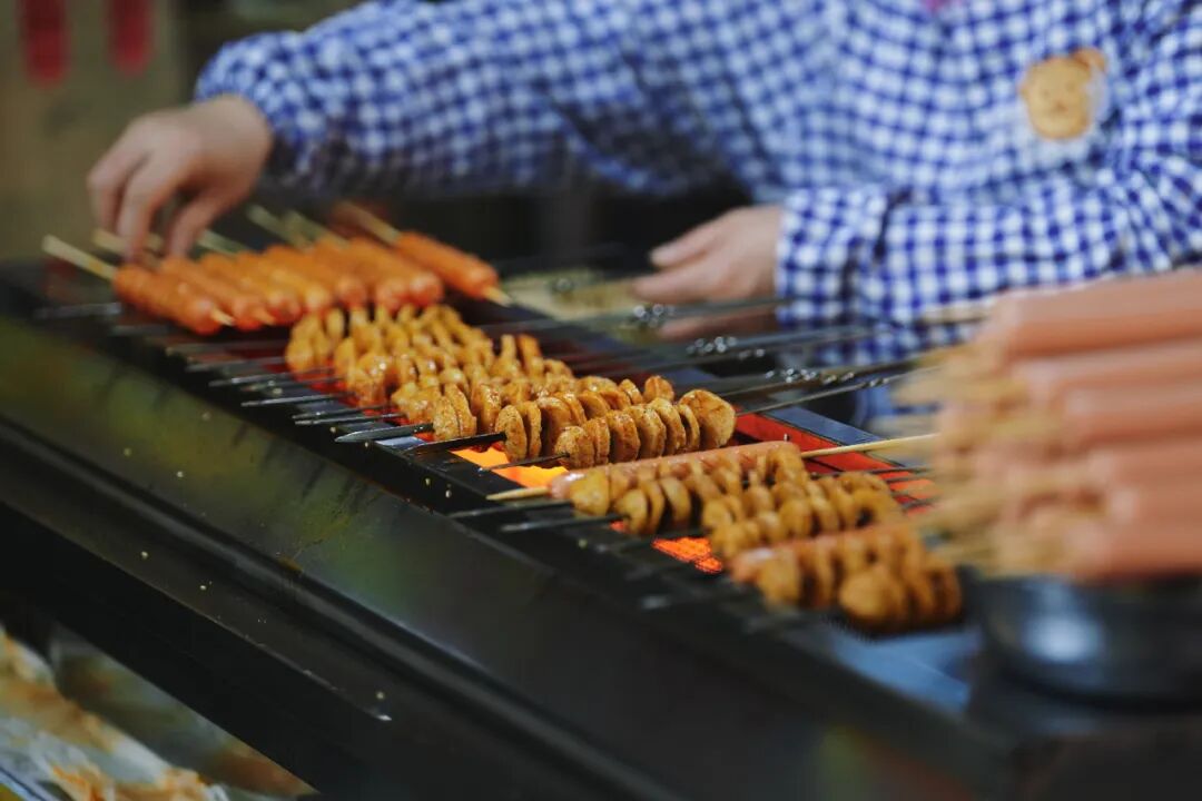 烧烤架上肉串滋滋作响