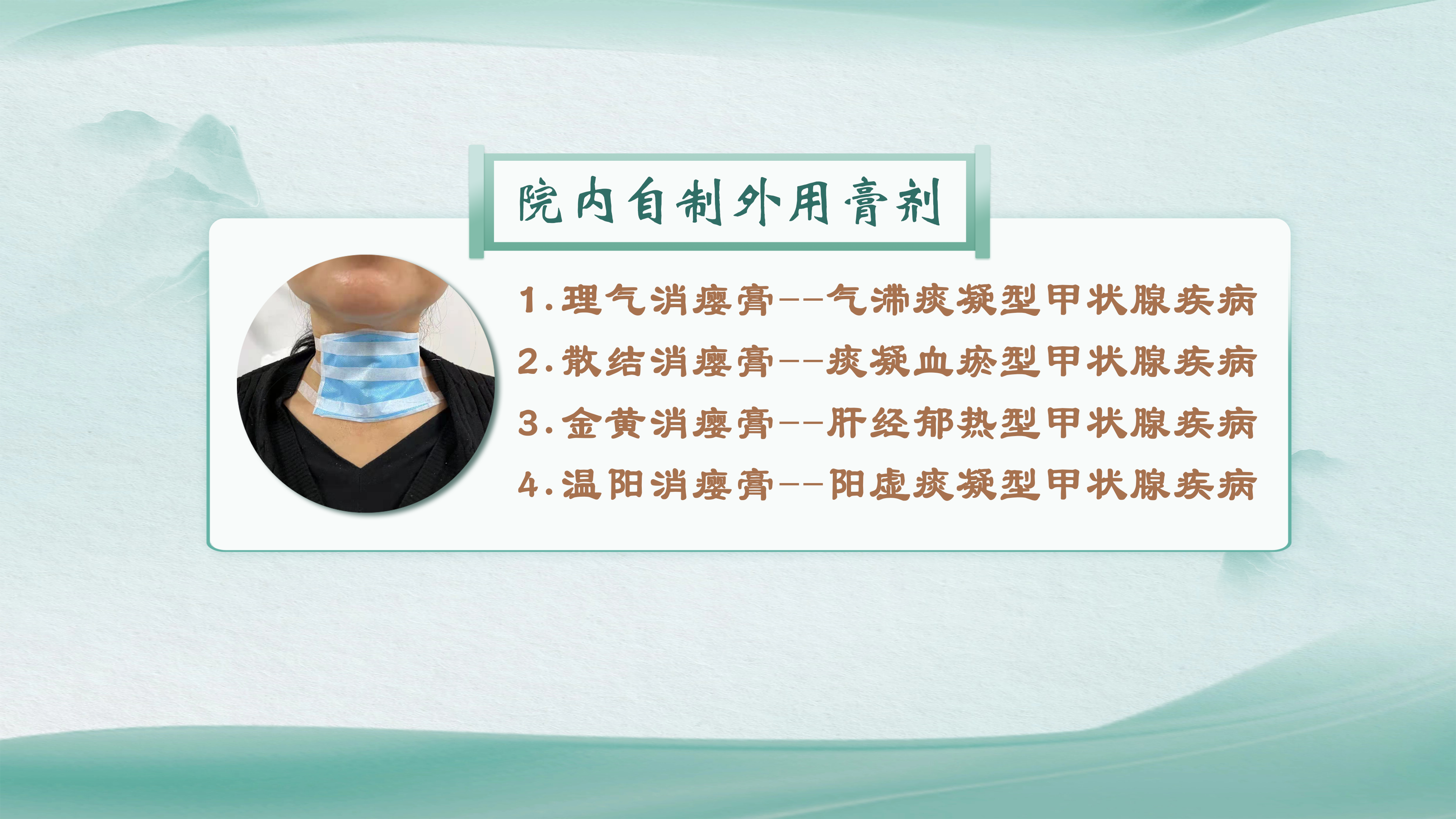 外用膏剂通过皮肤直接作用于甲状腺局部,不同类型的膏剂针对不同证型:
