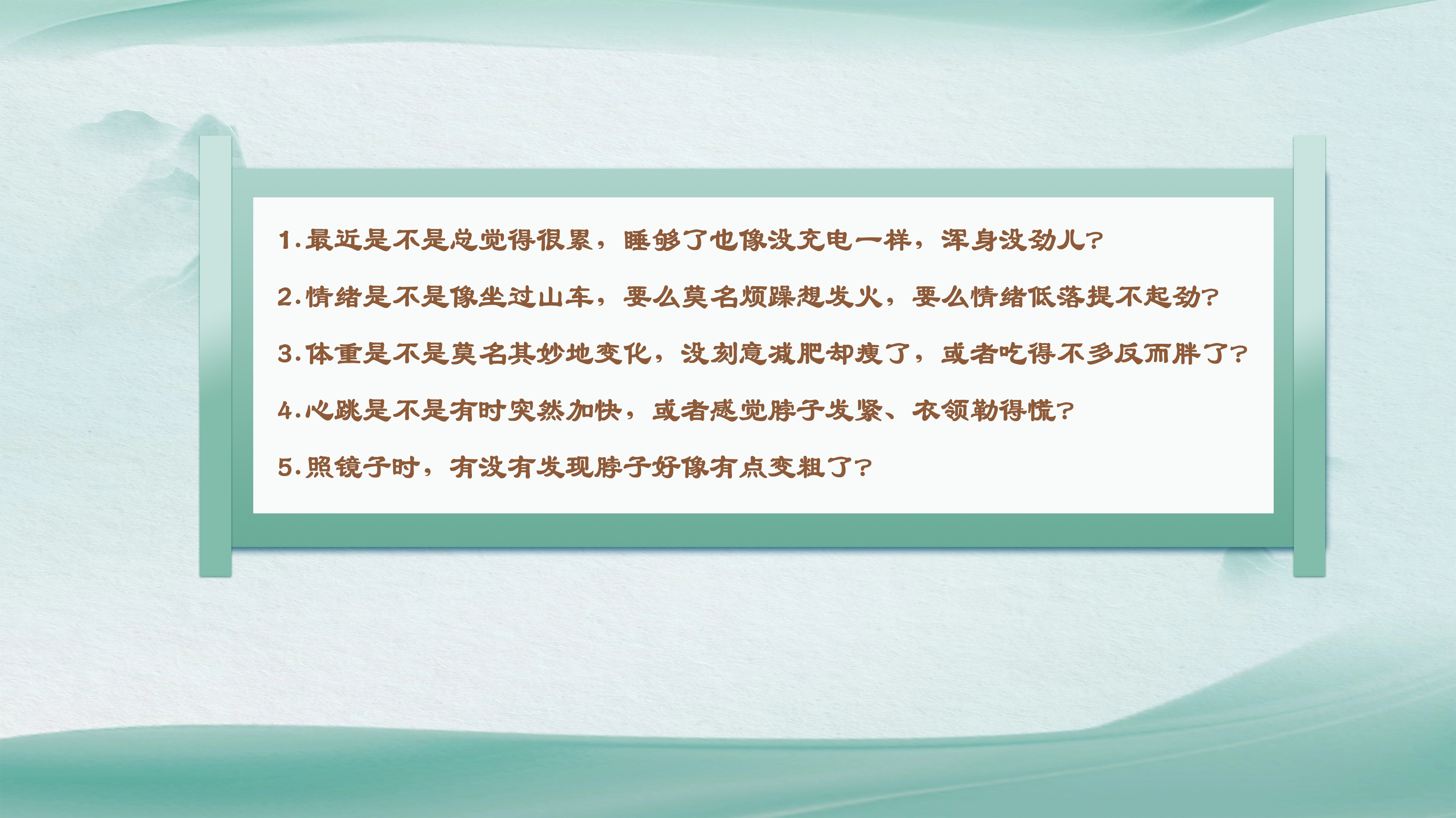你有没有自测过你的甲状腺是否健康?在今天的话题开启之前,请先花10秒看看以下这份自查清单: