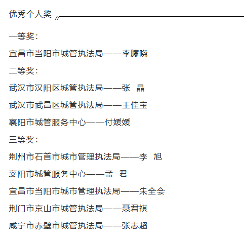 京山一人在全省城管执法大练兵比武竞赛中荣获优秀个人奖