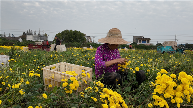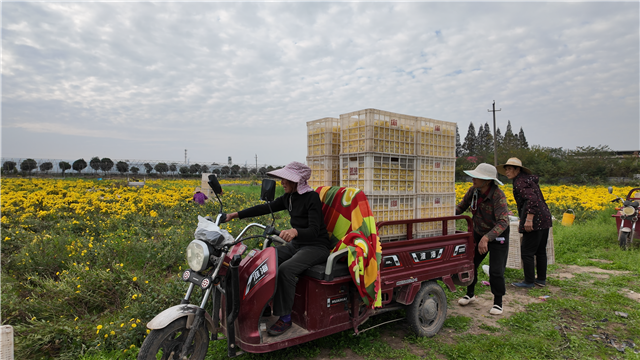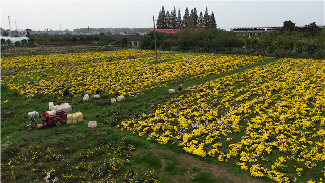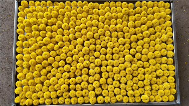 作为今年的主力品种,陶菊不仅产量稳定,经济效益也较为突出。栗全恒告诉记者:“陶菊的经济价值较高,目前亩产干花约300斤,这也带动菊园的整体收益比去年增长了约 20%。”