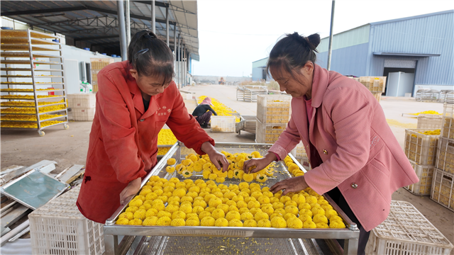 曾经单一耕作的农田,如今已蜕变为涵盖种植、加工、销售的菊花全产业链基地,为曹家河村的产业振兴筑牢了坚实根基。“我们从种植、采摘到深烘干实现一体化运营,并与多家电商平台合作,销售有保障。同时,我们也有自营电商平台,可自主销售产品。”栗全恒说。