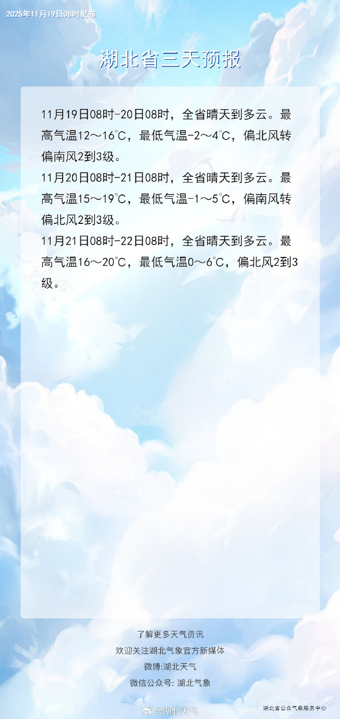 冲上20℃!湖北未来三天晴朗升温 早晚气温低需保暖