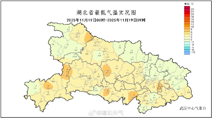 今天早上,湖北有31个国家气象站最低气温降至冰点及以下,创下半年来的新低,其中随县最低,为-3.1℃。武汉-0.7℃,也是下半年首次跌破0℃。此外,昨夜今晨恩施、宜昌、荆州、荆门、随州等地26个乡镇出现浓雾。