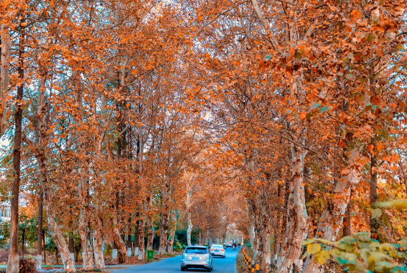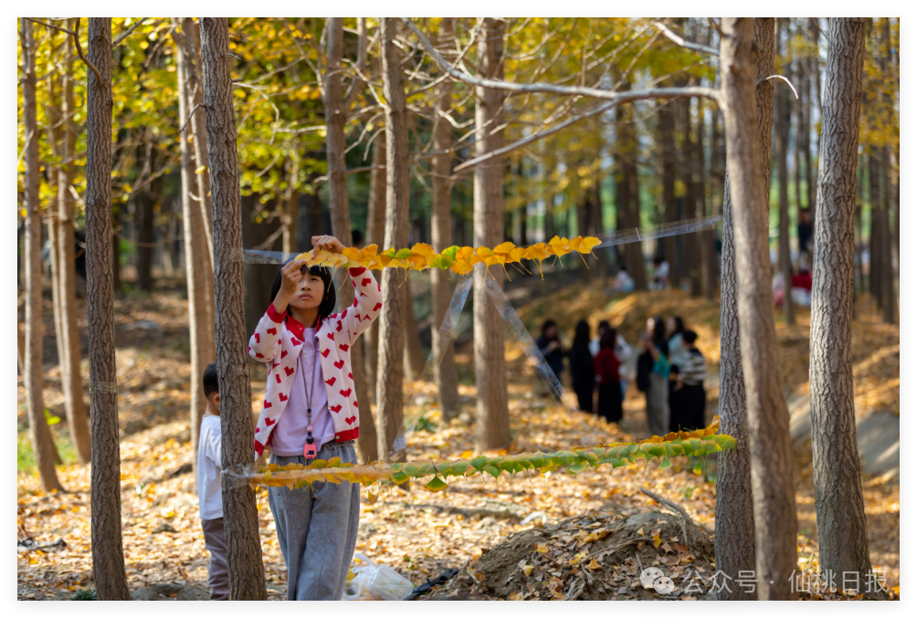 △层林尽染,满目流金,城东桃花岭大道银杏林成为市民郊游的好去处。图为11月15日,市民在银杏林里拍照定格秋日美景。