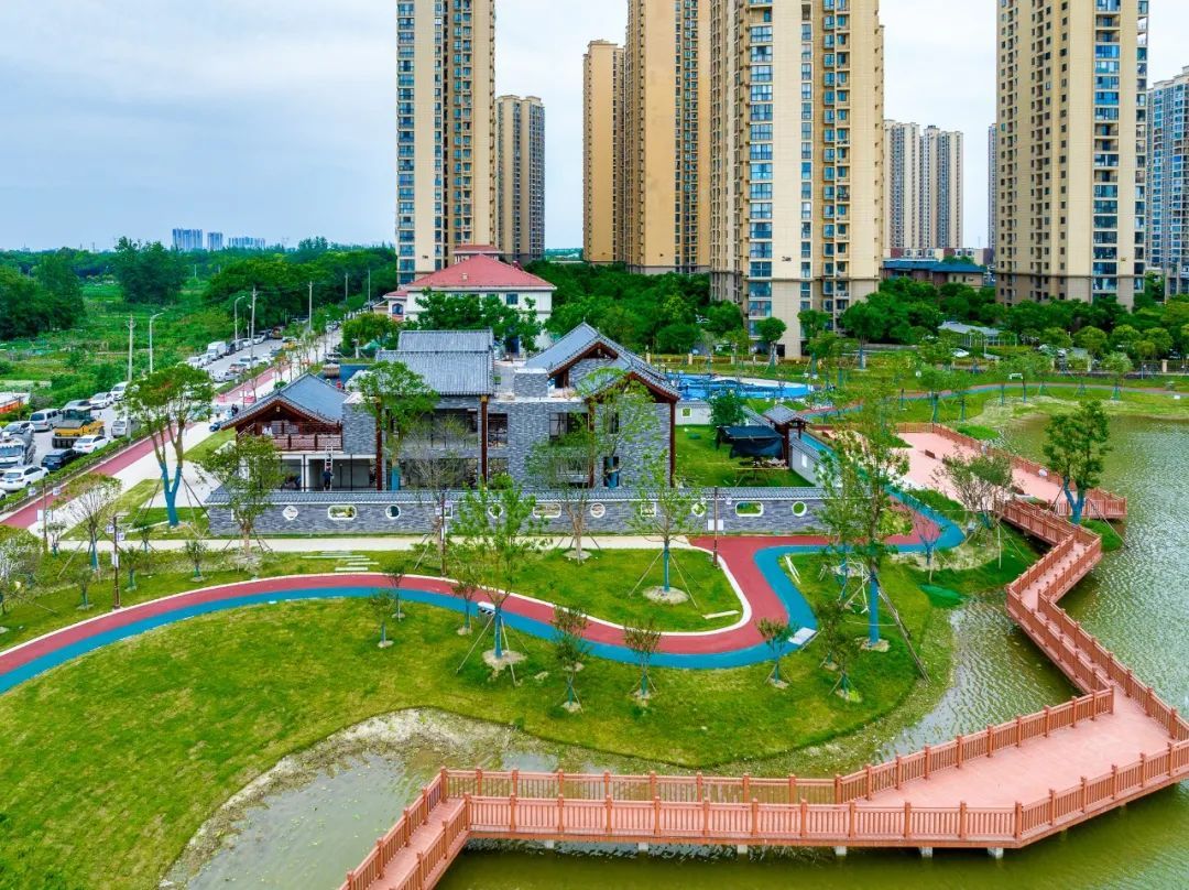 谁能想到,这片满是欢声笑语的滨水公园,曾是堆满建筑垃圾的脏乱坑塘。为满足市民对优质公共空间的需求,我市以“荷塘月色,乐享生活”为主题,融入古典建筑元素,用52529平方米绿地打造健康绿道、儿童活动区、体育休闲场地,2023年7月开园后又建设篮球场、乒乓球场,让这里变身全龄段市民的欢乐天地。