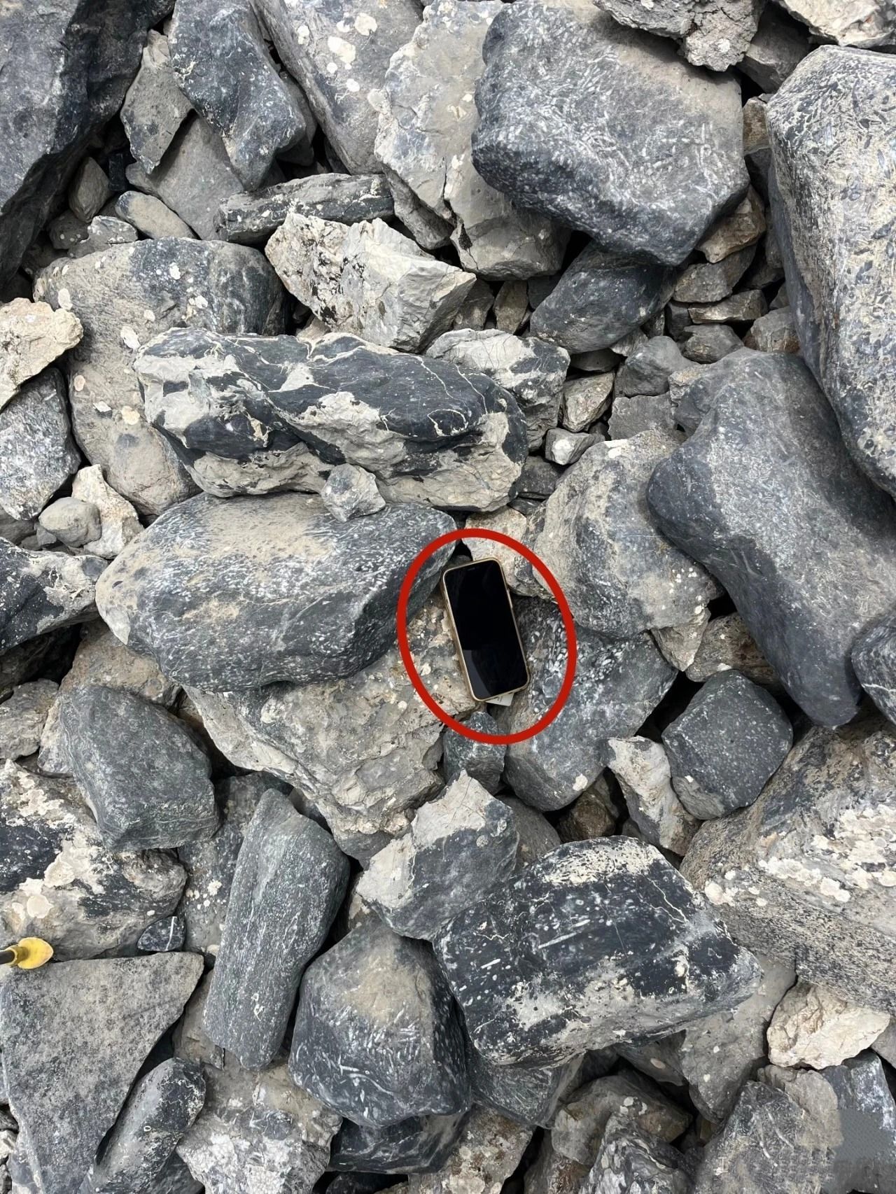 郭林强拍照时发现石块间的手机。图片由受访者提供