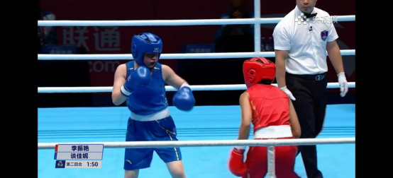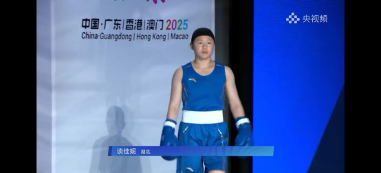 谈佳妮——代表湖北队拳击女子54公斤级进入16强。输比赛?不存在的,格局打开就赢了!