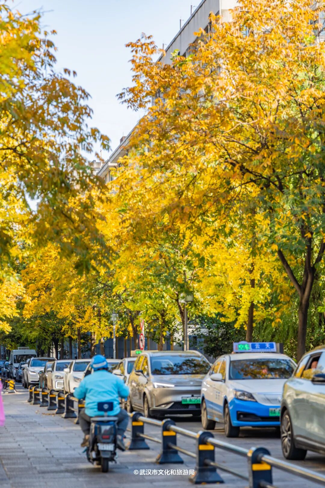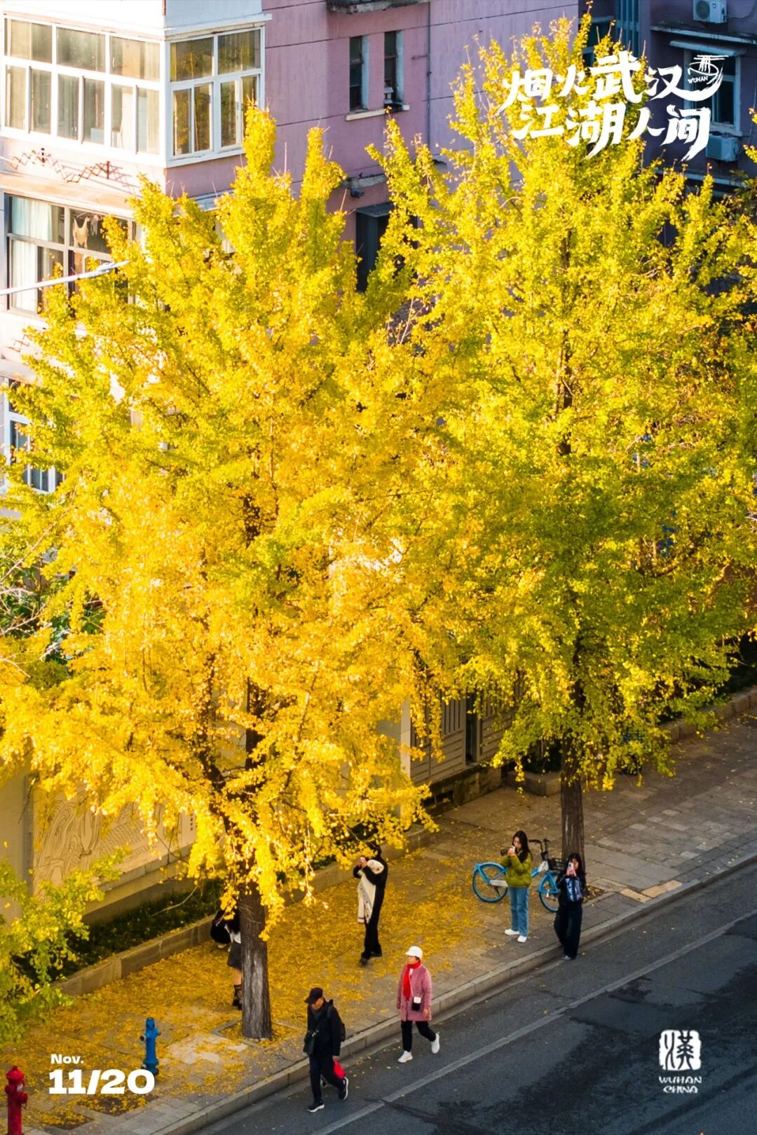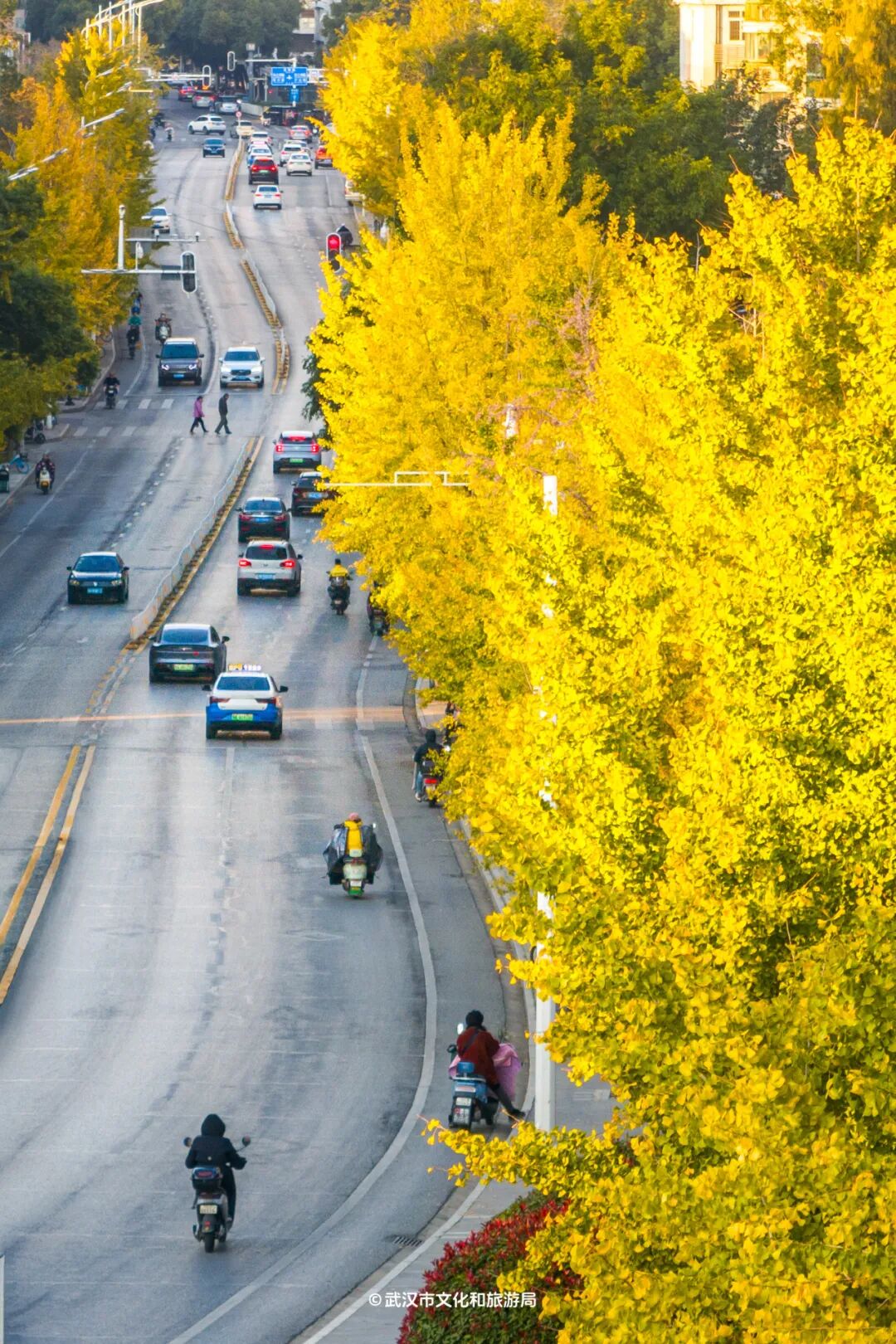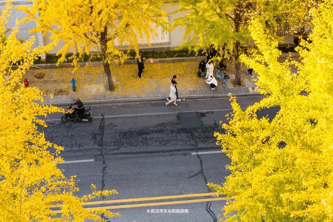 最近热度最高的银杏机位,非武昌的银杏大道「首义路」莫属。