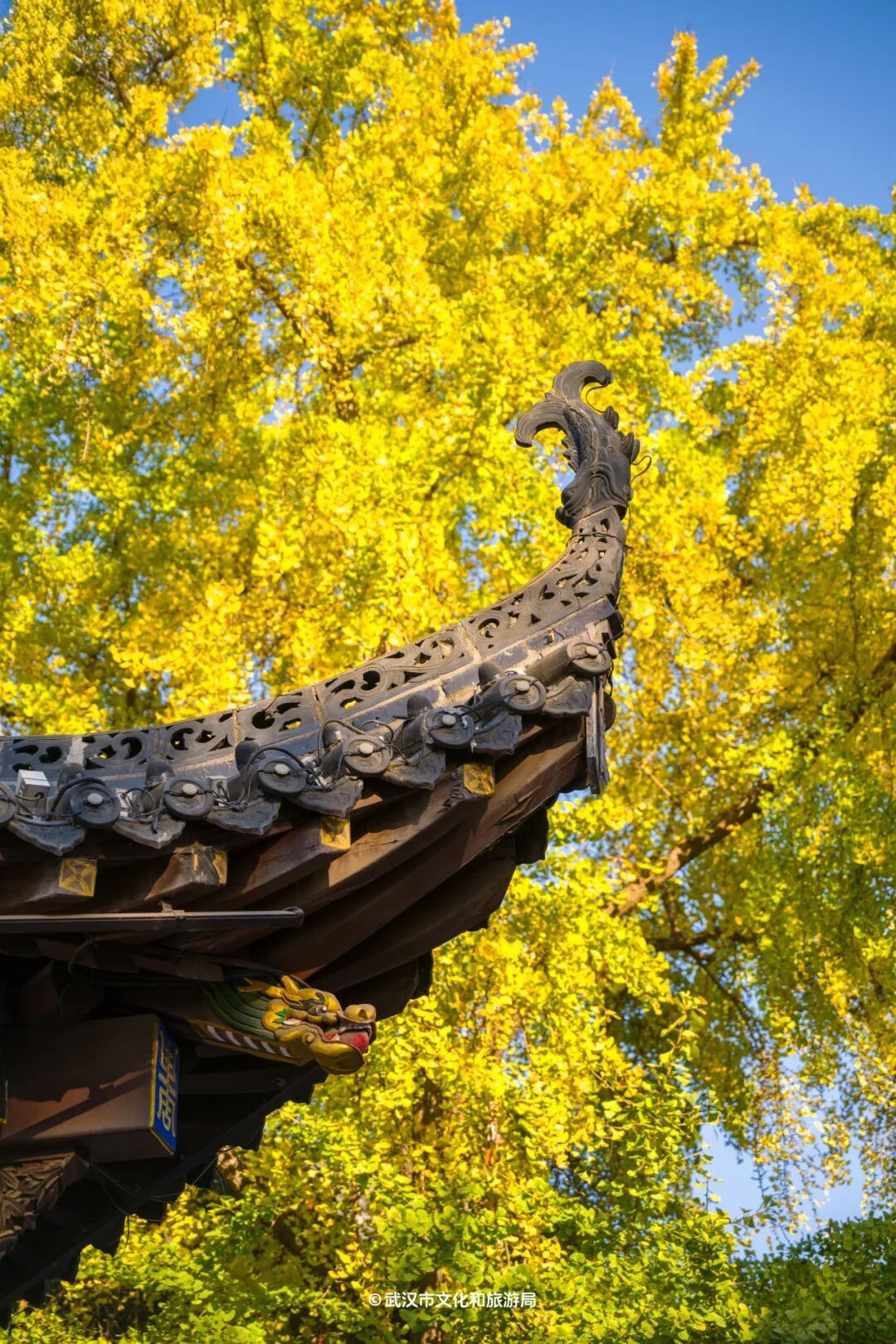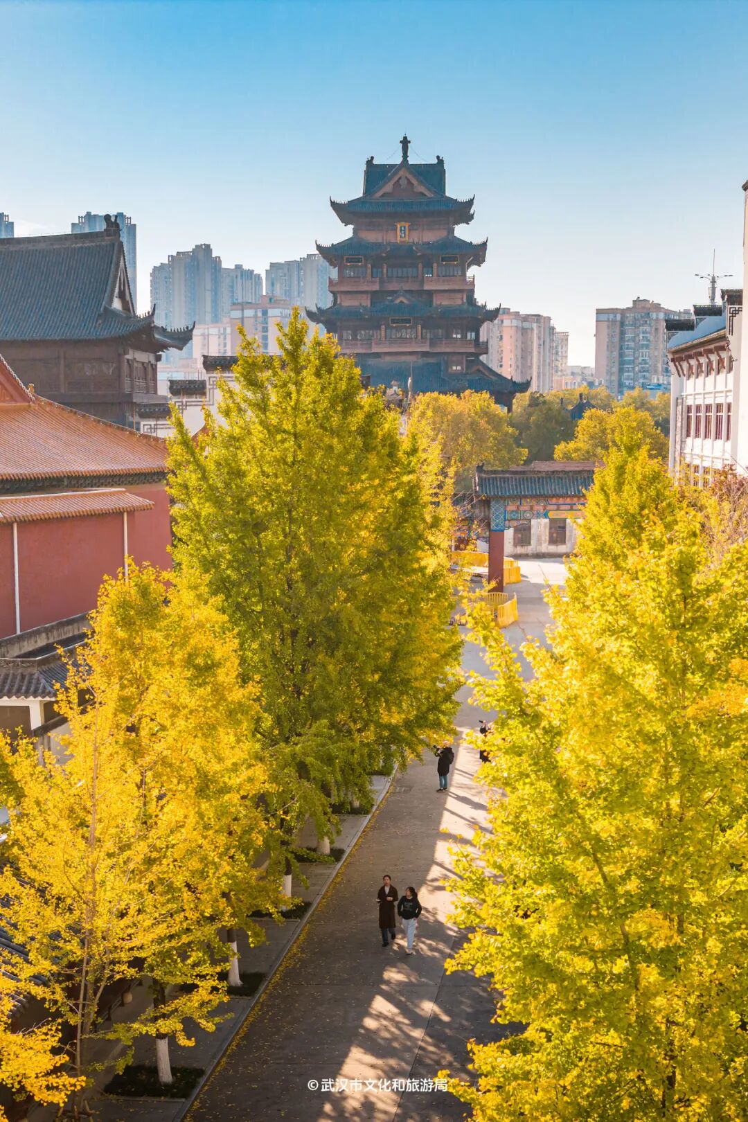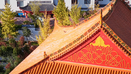「归元禅寺」的银杏目前黄了约6-7成,故宫同款的红墙银杏机位,即将上线!