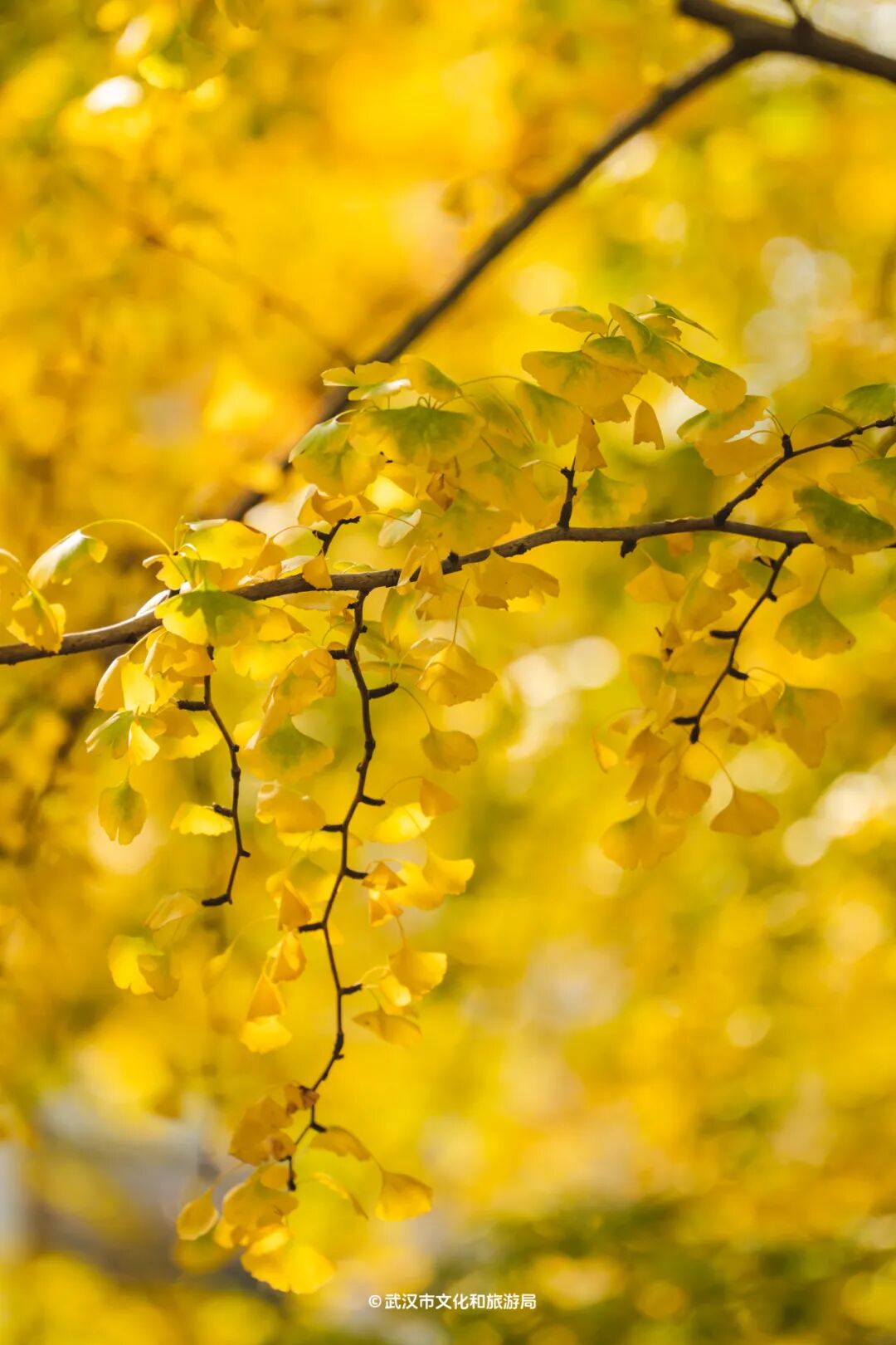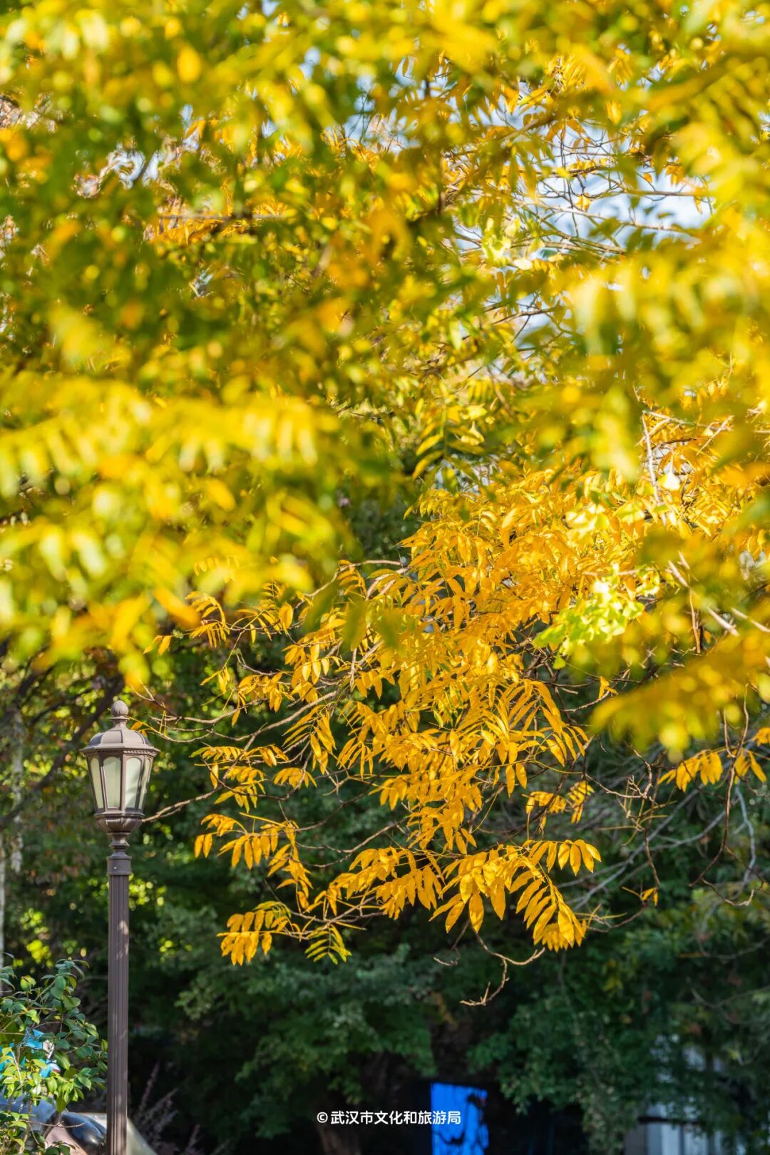 经过冷空气的洗礼,银杏、悬铃木、无患子、枫香的彩叶变色更加极致,此刻的武汉街头,就像一幅流动的油画,绚烂美丽。