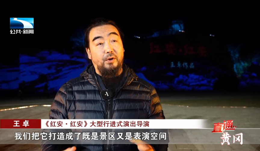 《红安·红安》大型行进式演出导演 王卓:打造成了既是景区又是表演空间,又是剧场的这样一个地方。很多空间的手法上,你要让现在的观众能接受,我想让你进入到黄安古城,那一刻的时候你就可以进来;我想让进入到上甘岭,你看到那一个苹果的时候,你仿佛置身于那个雪山之中。