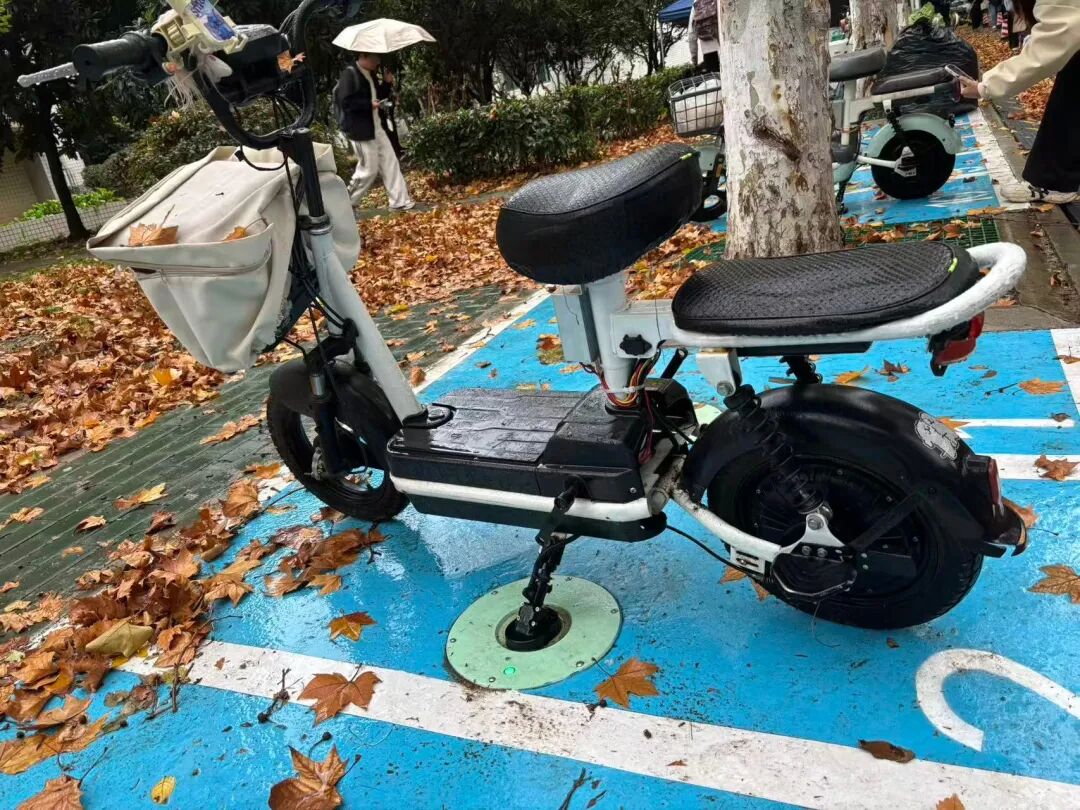 若想进行充电,首先需要为电动车安装专用的充电脚撑,随后扫码实名注册并购买电卡。充电时,只需将脚撑放置在充电圆盘上即可开始充电,用户可通过小程序查看充电进度,充满后系统会自动断电。充满时长根据电池情况而定,通常来说五六个小时即可充满电。