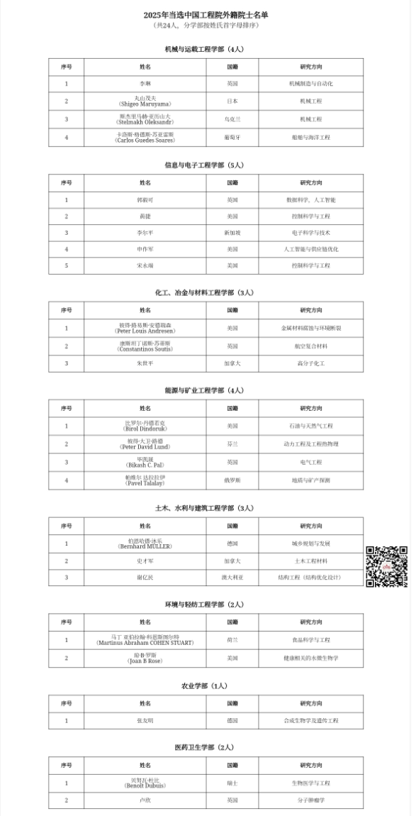 2025年“两院”院士增选人员名单(湖北)