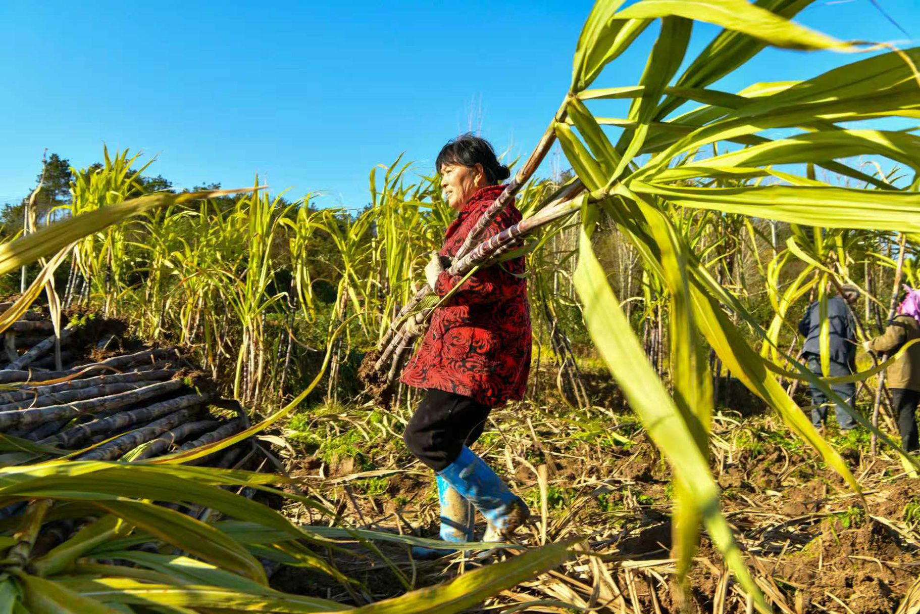 “今年的甘蔗长得特别好,秆粗、汁多、甜度足,亩产能达到18000斤,比去年增产近10%!”正在地里收割甘蔗的种植大户唐师傅,手持镰刀麻利地砍断蔗根、剥去老叶,将一捆捆鲜嫩的甘蔗整齐码放。他笑着介绍,自己种植的50亩甘蔗进入盛产期,每天都要雇10多名村民帮忙采收,“从清晨忙到傍晚,一天能收2万多斤,收购商早就订好了,刚割下来就装车运走,根本不愁卖。”