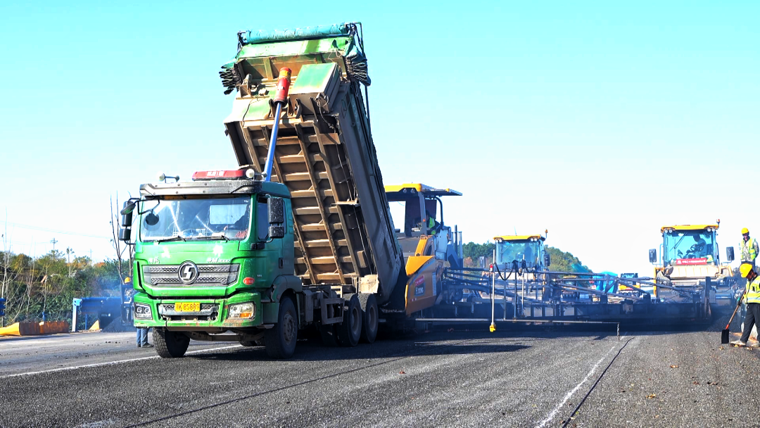 “目前项目正在进行沥青中面层摊铺,全线每天投入500余名建设者、百余套设备持续作业,计划11月底完成中面层摊铺任务。”中铁二十局京港澳改扩建3标项目副经理宋林伟说。