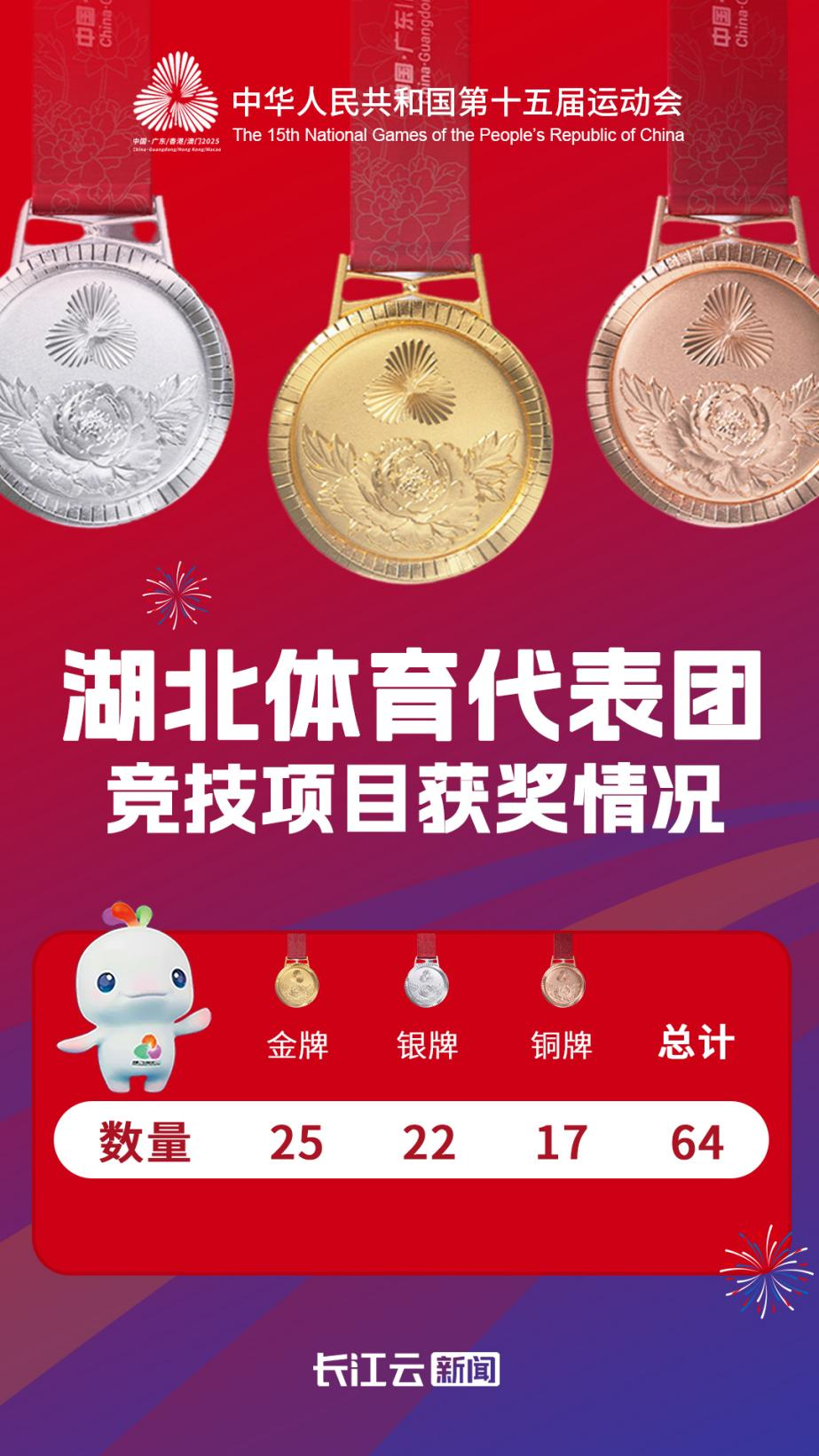 11月21日,第十五届全国运动会各项赛事顺利收官,今晚将举行闭幕式。湖北体育代表团不负众望,交出25金22银17铜的亮眼成绩单。赛场上,荆楚健儿永不言弃,勇争第一,不仅尽显竞技风采,更刷新多项历史纪录、实现多个“零的突破”。