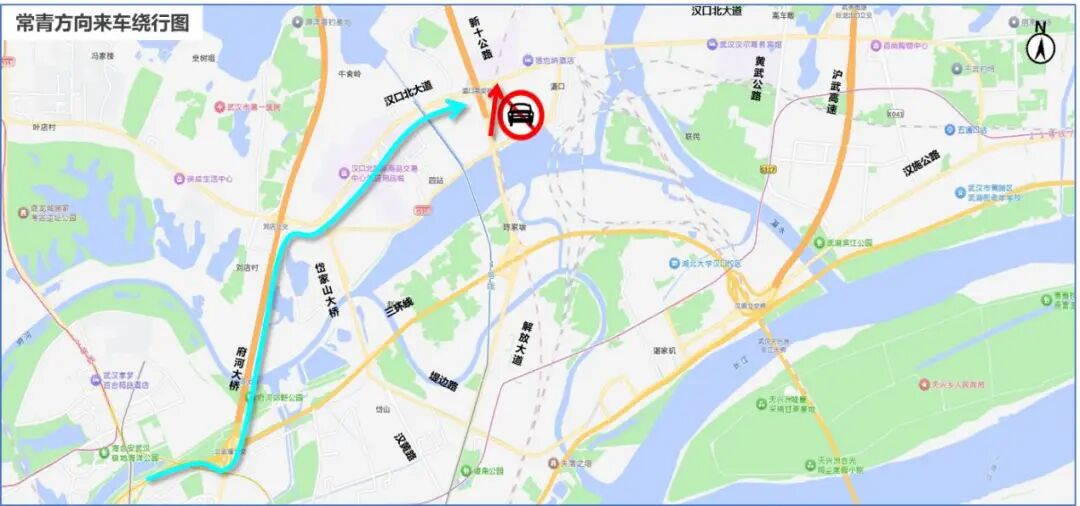 一、武大高速汉口北互通钢栈桥(解放大道下延线下汉口北大道)禁止机动车通行。