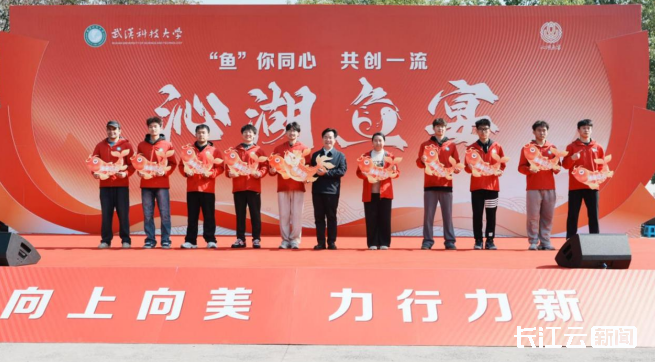 上午11:30,南园餐厅广场人潮涌动。校长吕勇宣布鱼宴开幕,并为“捕鱼王”颁奖。校党委副书记沈季伟在致辞中表示,今年以“鱼你同心 共创一流”为主题,“‘鱼你同心’是文化传承的基因密码;‘共创一流’是全体武科大人的共同追求。”