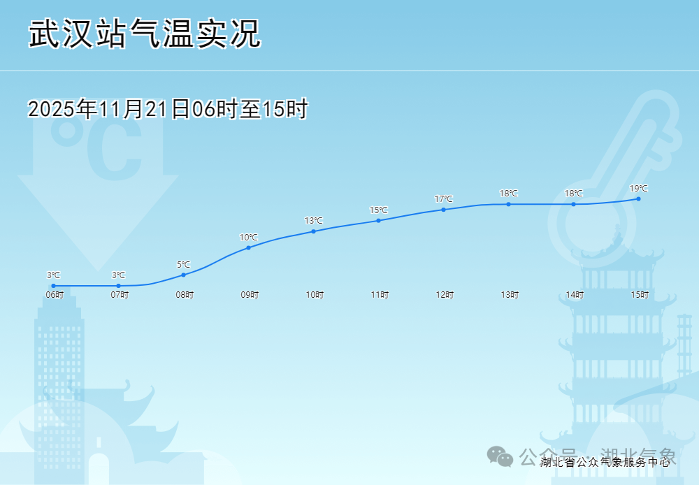 11月24日08时-25日08时,全省多云到晴天。最高气温鄂东南18~22℃、其他地区14~17℃,最低气温北部-4~0℃、南部1~4℃,偏北风4到5级、阵风6到8级。