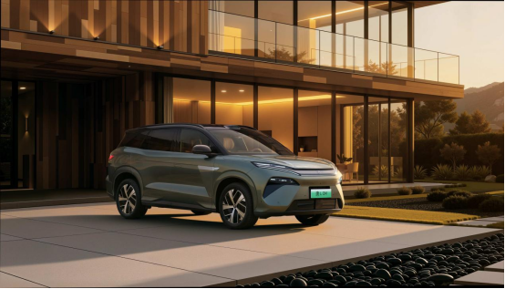 其中,橄榄绿采用低饱和度、高反射金属漆面,通过纳米级高透色浆与微米级超细铝粉的精密配比,呈现出绿中透金的渐变效果。在阳光下呈现清新明亮的视觉效果,而在室内则转为深邃墨绿,完美契合当代精英“于静谧中蕴藏活力”的生活态度。同时,唐L为配合橄榄绿车色,加入了悬浮黑顶,强化视觉张力,黑色车顶与车身撞色鲜明,营造“悬浮式”视觉效果,增强车身层次感,营造出极具质感的运动风格。