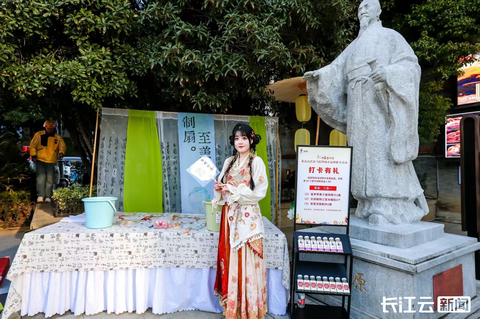 活动邀请了武汉市旅行商、旅游协会、文旅达人以及媒体记者代表等百余人齐聚一堂,共商合作,共谋发展,共同见证这场跨地域的文旅对话。现场采用“演出+市集+体验”的多元形式展开,既有视听盛宴,也有互动乐趣。原创情景剧、流行Rap、城市宣传曲轮番上演,以别出心裁的创意、青春化的表达,生动演绎当阳的美食、文化、美景,瞬间点燃现场观众的热情,赢得阵阵喝彩;“关公赛马”“张飞投壶”“漆扇制作”等融合三国文化与手工体验的互动活动更是人气高涨,吸引了不少市民踊跃参与,在趣味中感知三国文化,在游乐里加深对当阳的城市印象,活动现场青春气息扑面而来。