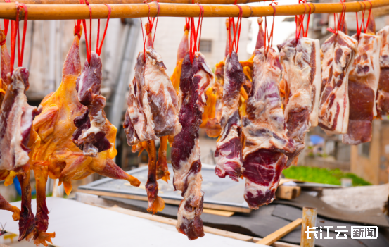 (安陆街头的腊肉腊鸡 图片来源:长江云新闻)