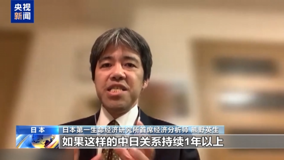 日本第一生命经济研究所首席经济分析师 熊野英生:如果这样的中日关系持续1年以上,即使没有2.6万亿日元,也将减少2万亿日元以上的中国游客消费,对于日本的旅游产业,特别是地方经济将造成巨大冲击。