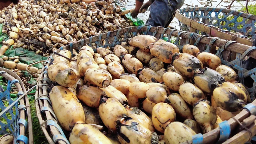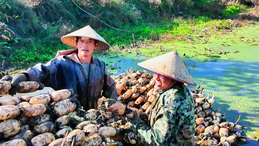 莲藕种植户文小飞说:“我们莲藕主要供超市,顾客可随意挑选用着炖汤、清炒,像这后面的藕巴还可用来炸些藕夹、藕丸子之类的,基本上不愁销。”