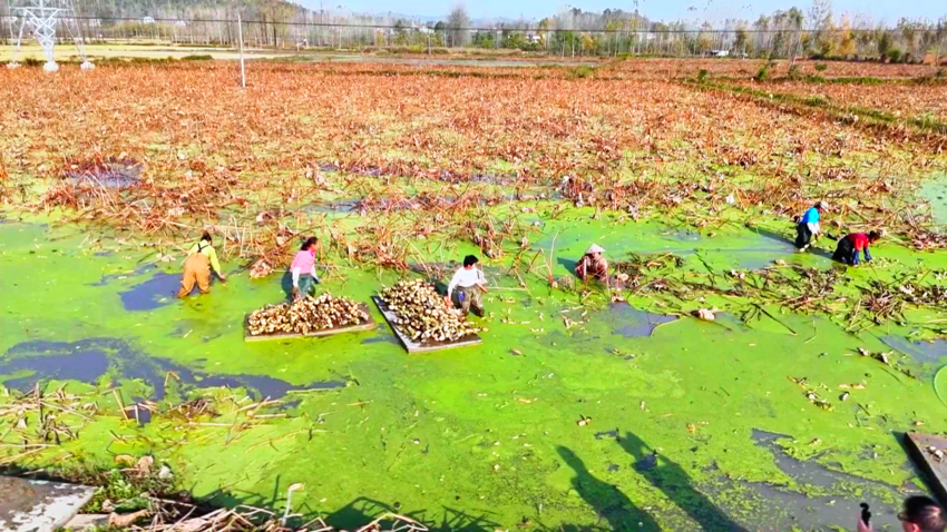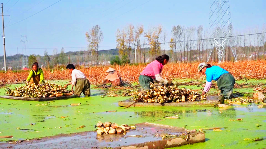 湖北谷城:千亩藕塘迎丰收 “水中珍品”铺就乡村振兴路