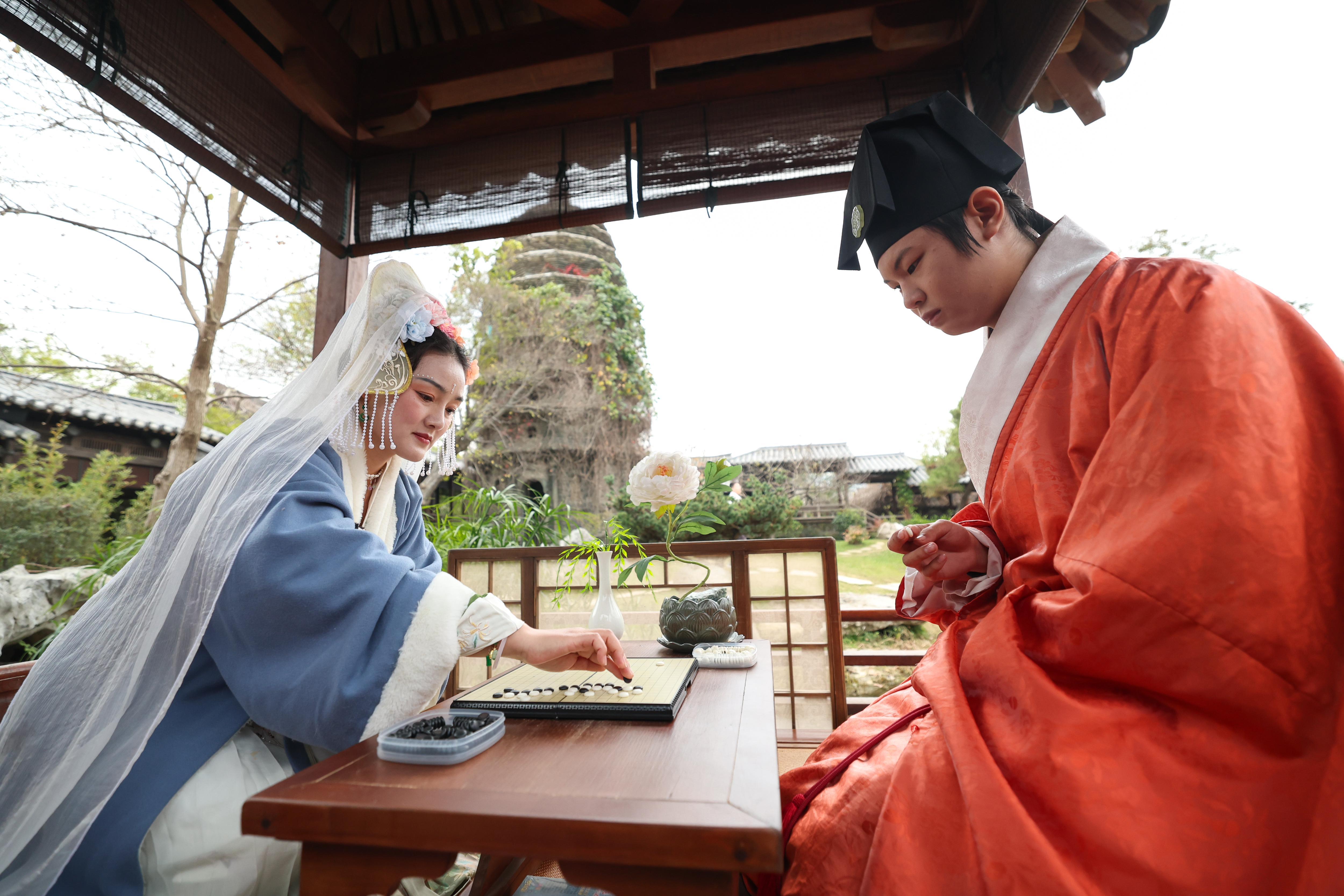汉服爱好者对弈会友。