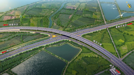 作为孝感融入武汉都市圈的重要基础设施,陈天大道不仅是关键的集疏运通道,更将构建“公路+水运+航空”现代化多式联运体系,成为推动汉孝两地深度融合的“新引擎”。项目起于孝武大道与S419相交处,向东延伸,下穿汉孝城际铁路,上跨G107,最终接市临空经济区已建段,止于界河大桥,全长19.399公里,总投资15.56亿元。