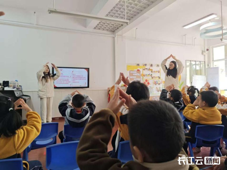 以童声为炬,燃红色初心。11月21日上午,武汉工程大学百“化”林红歌创作实践团的队员们走进大舒社区小金星幼儿园,为小朋友们带来了一堂别开生面的音乐思政课。团队成员们将经典的红色旋律转化为生动有趣的互动游戏与手势舞蹈,用孩子们喜闻乐见的方式,让红色基因在幼小的心田中生根发芽,为传统的思政教育注入了全新的活力。