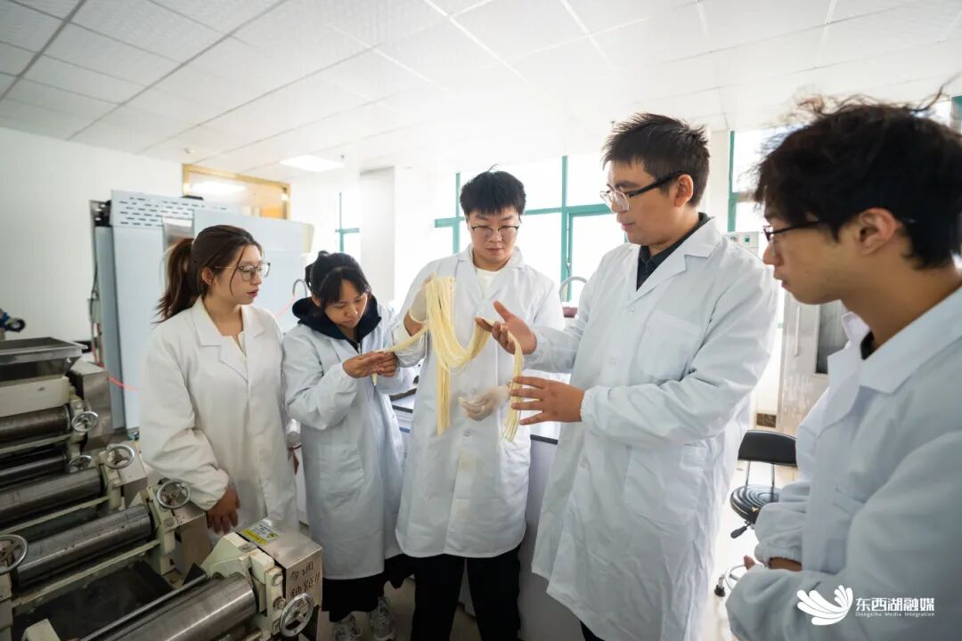 在武汉轻工大学大宗粮油精深加工教育部重点实验室,研究生们专注地操作电子天平,精确称量样品。武汉轻工大学食品科学与工程学院教授、科技成果转换中心主任王学东正在指导研一的新生学习制面工艺,耐心讲解每个环节的技术要点。“标准要严格,条件要周全。”他轻声叮嘱,“我们评估和检测的,是关乎老百姓‘舌尖上的安全’。”