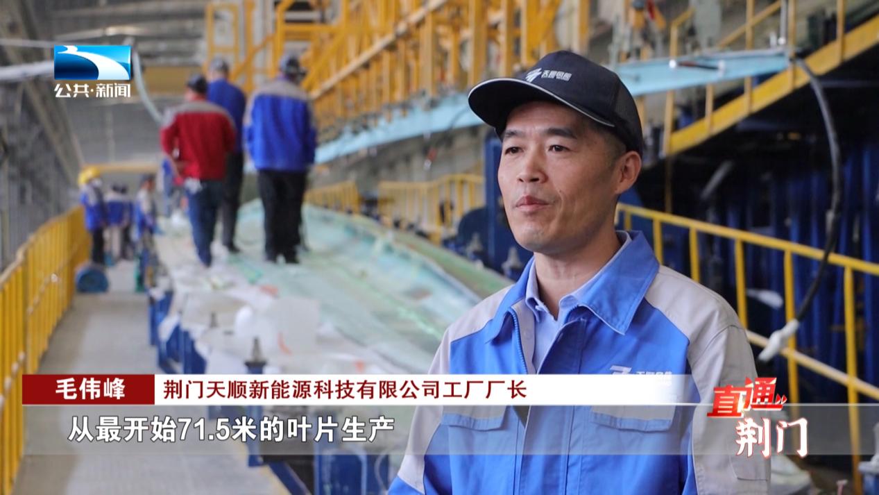 荆门天顺新能源科技有限公司工厂厂长 毛伟峰:从最开始71.5米的叶片生产,逐步开始生产93米,94米,99米,到现在最大能生产105米的叶片,叶片长度的增加,代表了我们技术能力和我们生产能力的提升。