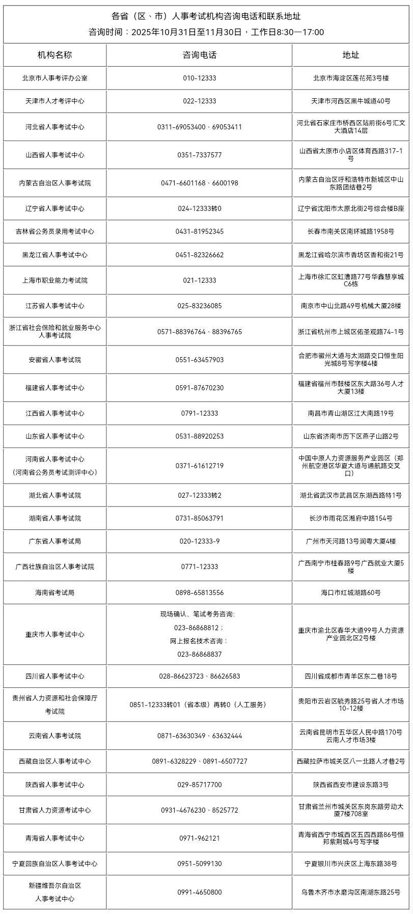 完成报名确认后,报考人员应在2025年11月24日0:00至11月30日15:00期间登录专题网站,选择“考生考务入口”(或报名确认及准考证打印网址)进入,通过报名序号和身份证号登录报名确认及准考证打印系统。仔细阅读《准考证打印须知》,阅读完毕后,勾选“我已阅知并同意”,点击“下一步”按钮,跳转至省(自治区、直辖市)《准考证打印注意事项》,阅读完毕后,勾选“我已阅知并同意”,点击“下一步”按钮,显示报考人员的准考证信息,点击“打印”按钮,即可完成准考证打印。打印中如遇问题请与当地考试机构联系解决。