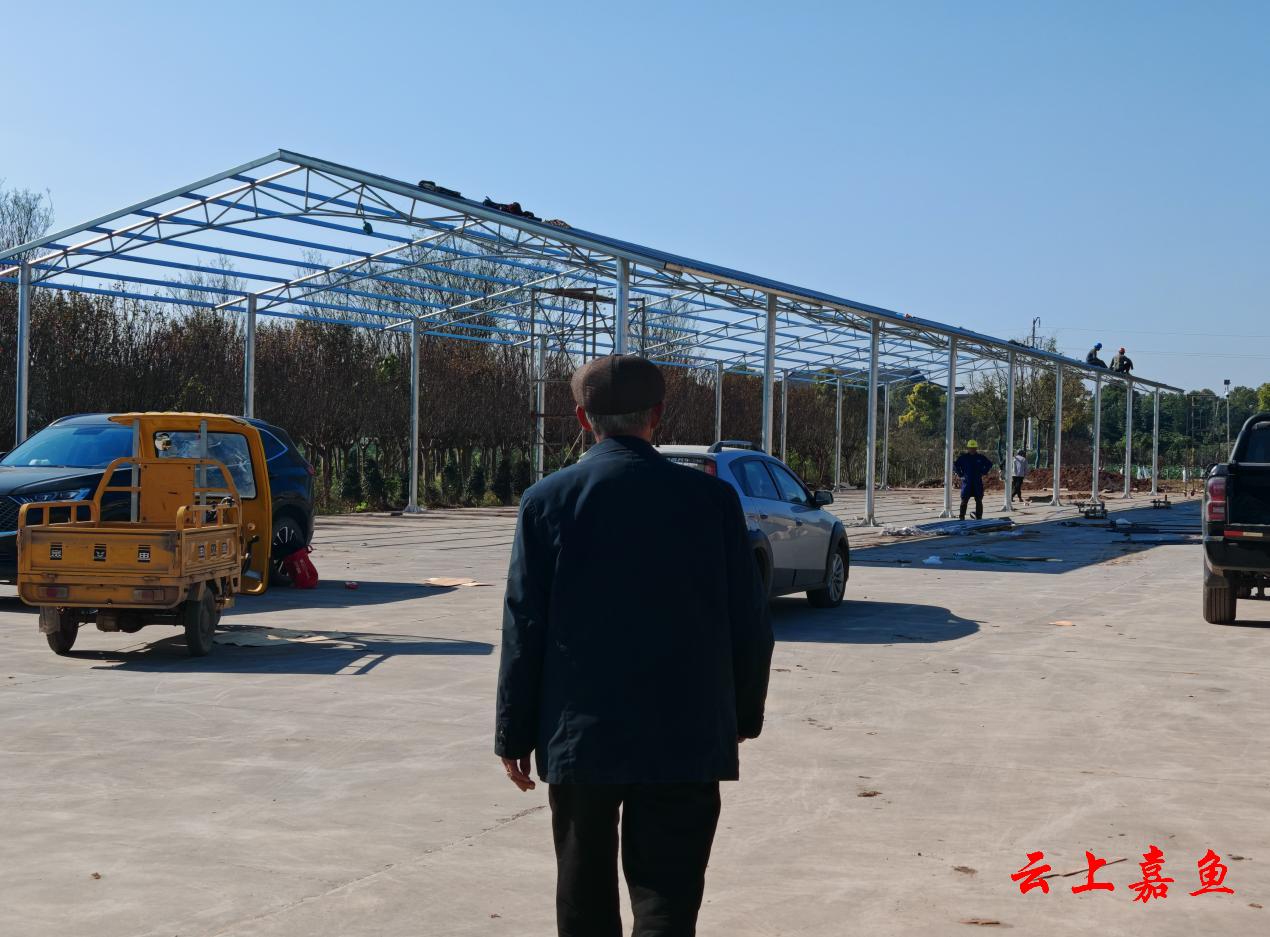 11月20日,记者跟着周明西,来到了停车场建设现场,看到工人们正在安装停车场的棚顶。