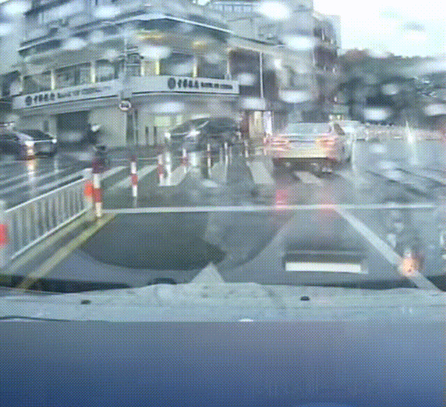 雨中礼让行人的车辆
