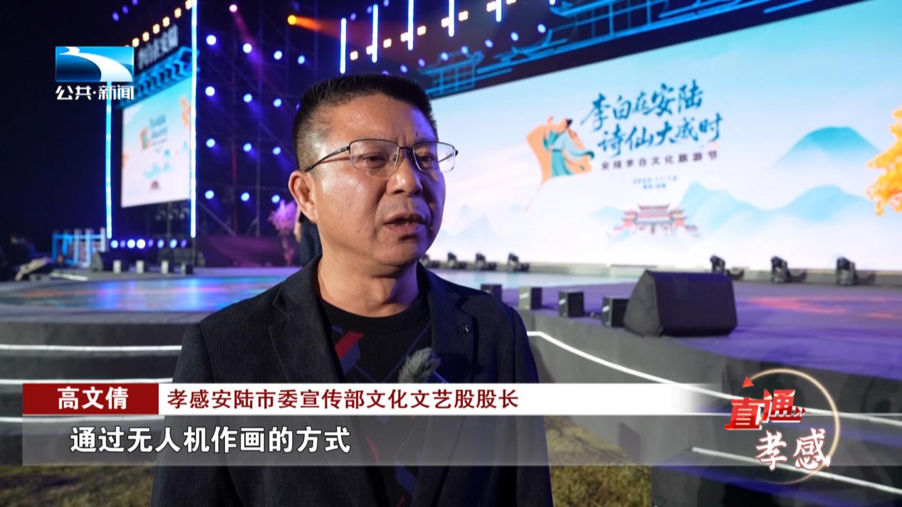 孝感安陆市委宣传部文化文艺股股长 高文倩:我们特意选取李白在安陆创作的诗篇,通过无人机作画的方式,来表达诗歌的意境,增强对本土文化的认同。