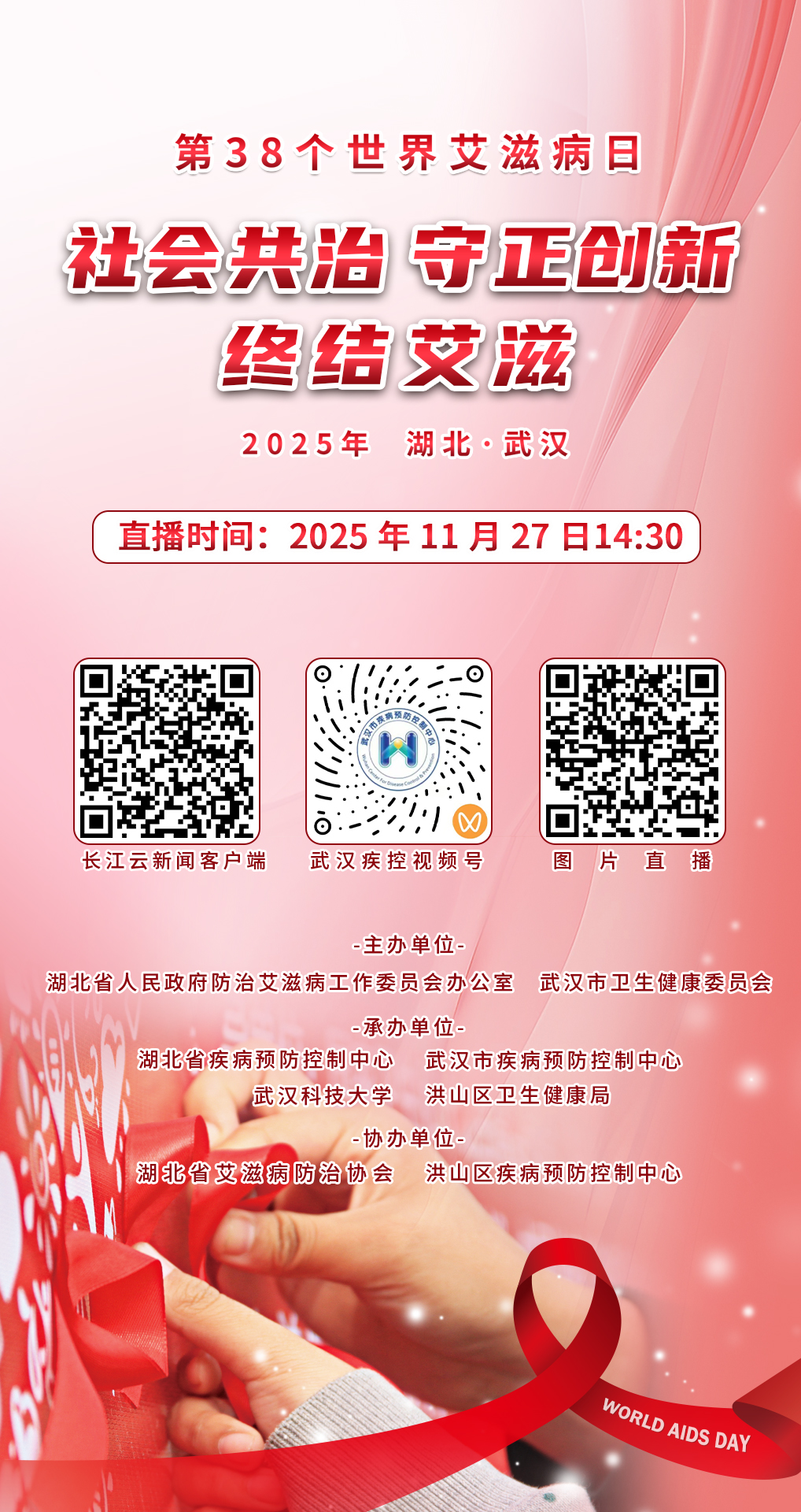 直播入口:长江云新闻客户端、武汉疾控视频号,扫描活动海报二维码即可同步观看。