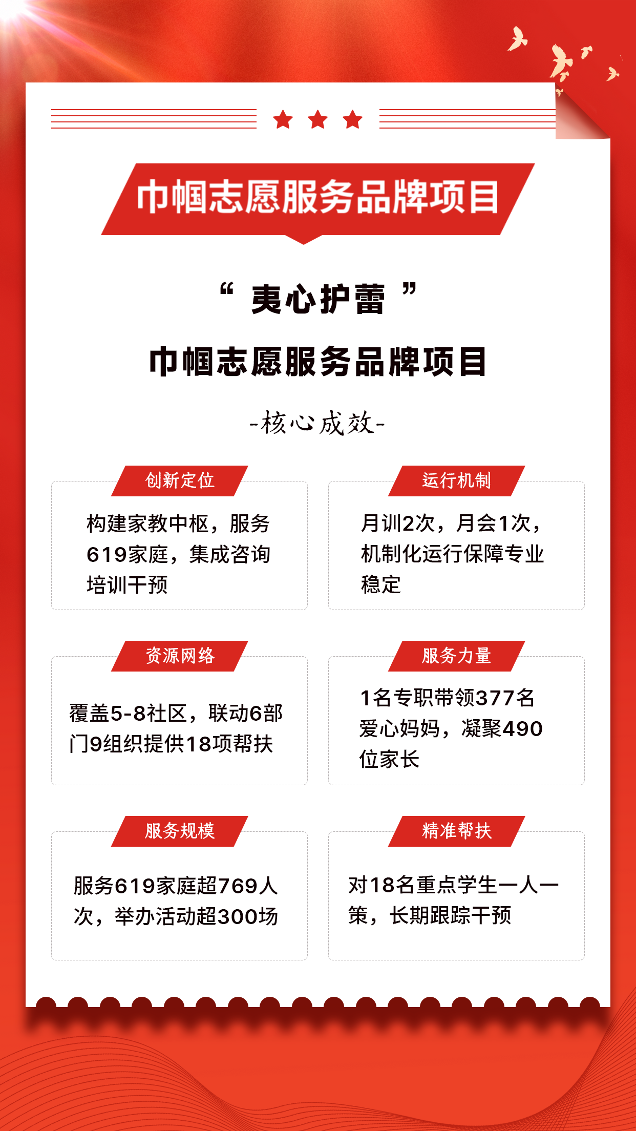 随着《家庭教育促进法》的颁布实施,如何为家庭提供科学、可及的支持,特别是为困境儿童构筑安全屏障,成为基层治理的重要课题。“夷心护蕾”项目没有停留于零散活动,而是从顶层设计入手,构建了一个有中枢、有网络、有队伍、有资源的生态系统。它充分发挥组织优势,将专业指导与大众参与相结合,将公共服务精准滴灌至最需要的家庭。