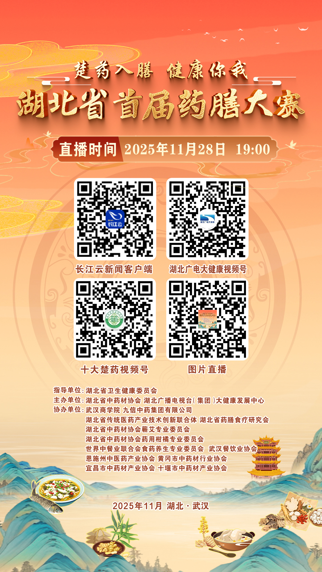 直播平台:长江云新闻客户端、湖北广电大健康视频号、十大楚药视频号