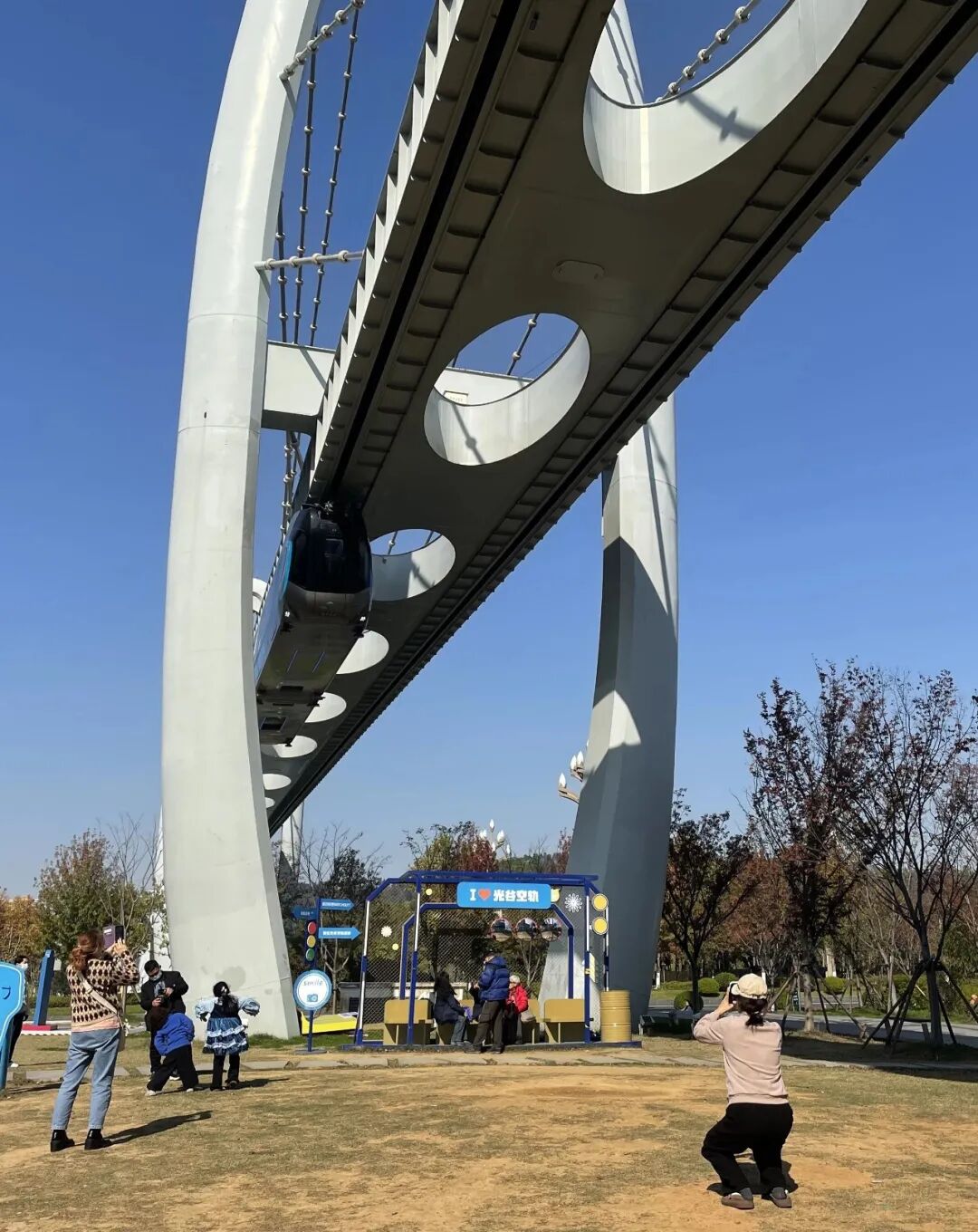 “光谷光子号”空轨旅游线是目前全国唯一开通运营的空轨线路,全长10.5公里,设车站6座,途经九峰山森林公园、豹子溪公园、龙泉山风景区等景点,于2023年9月26日开通,全程无人驾驶。