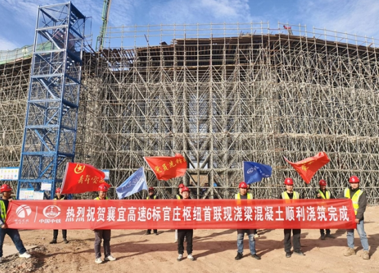 11月26日,襄宜高速土建六标项目官庄枢纽A匝道第七联现浇梁顺利浇筑完成,标志着官庄枢纽施工取得重大突破,为后续桥面系及附属工程施工奠定了坚实基础。
