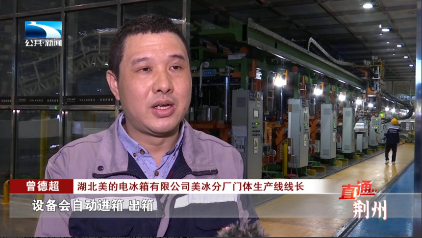 湖北美的电冰箱有限公司美冰分厂门体生产线线长 曾德超:我们操作就只按一个开关,设备会自动进箱、出箱,自动注料、发泡、出箱,产量差不多翻了5倍。