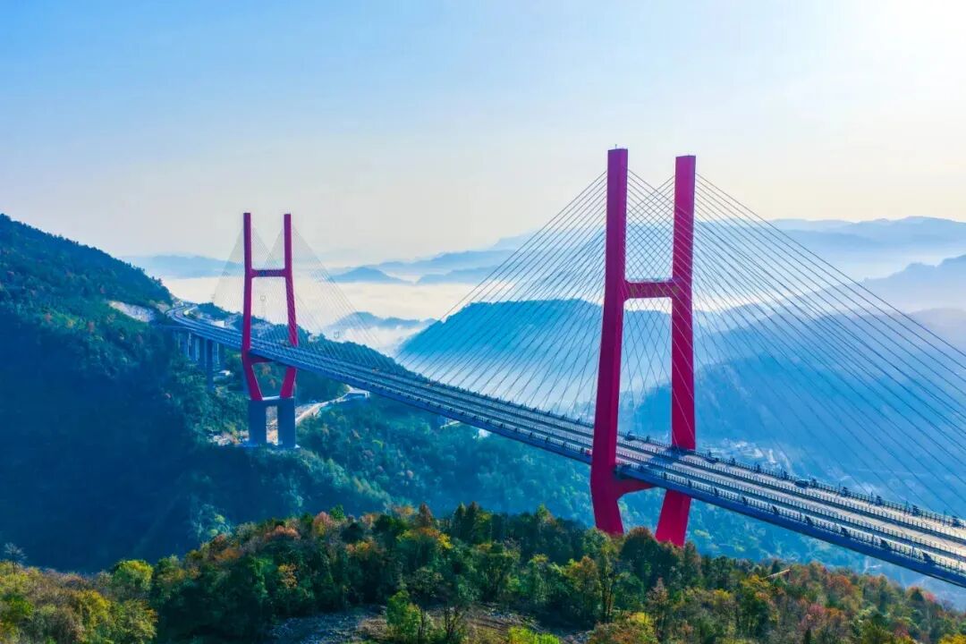 ▲11月18日,宜来高速柴埠溪特大桥顺利完成全桥涂装。图片来源:魅力五峰