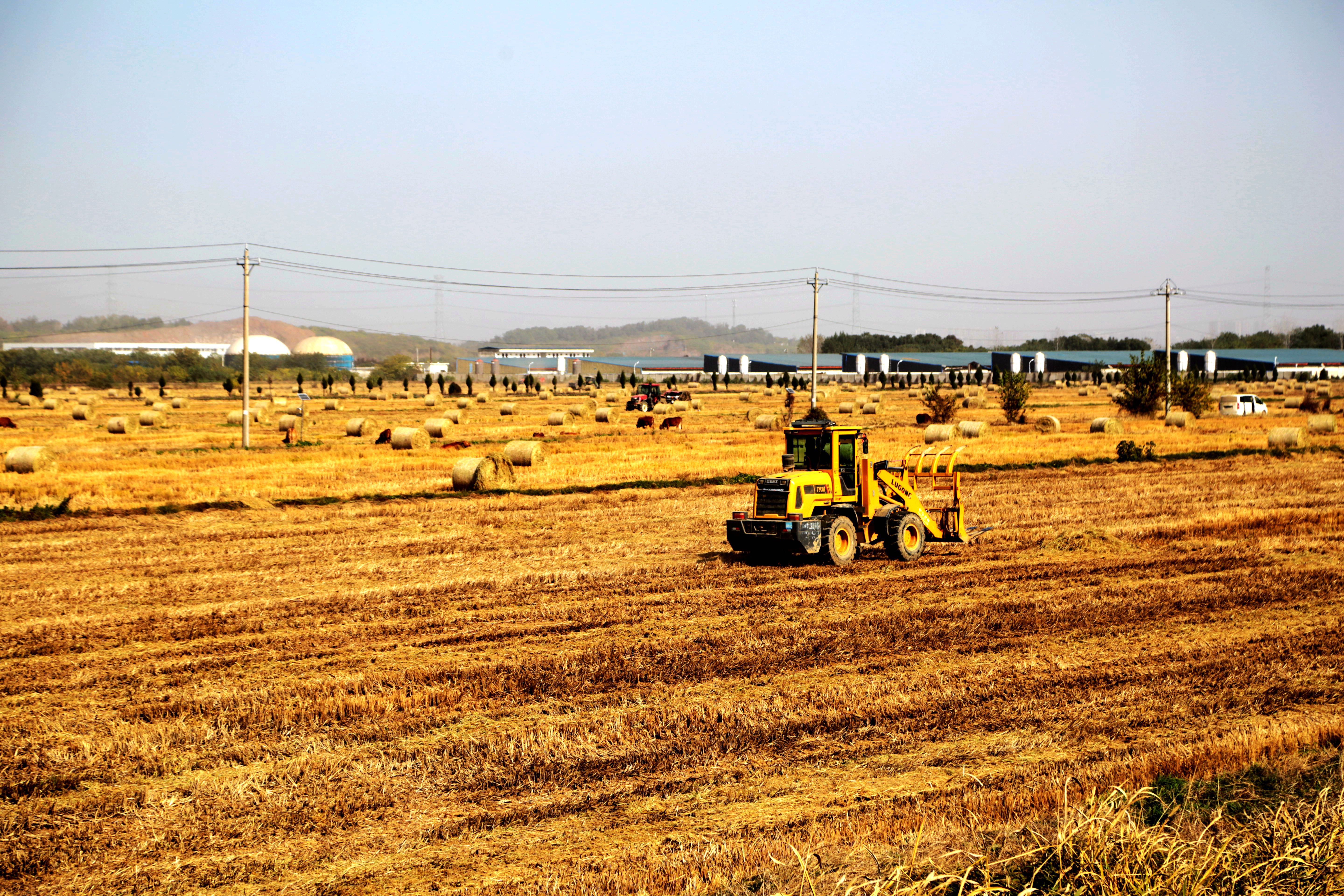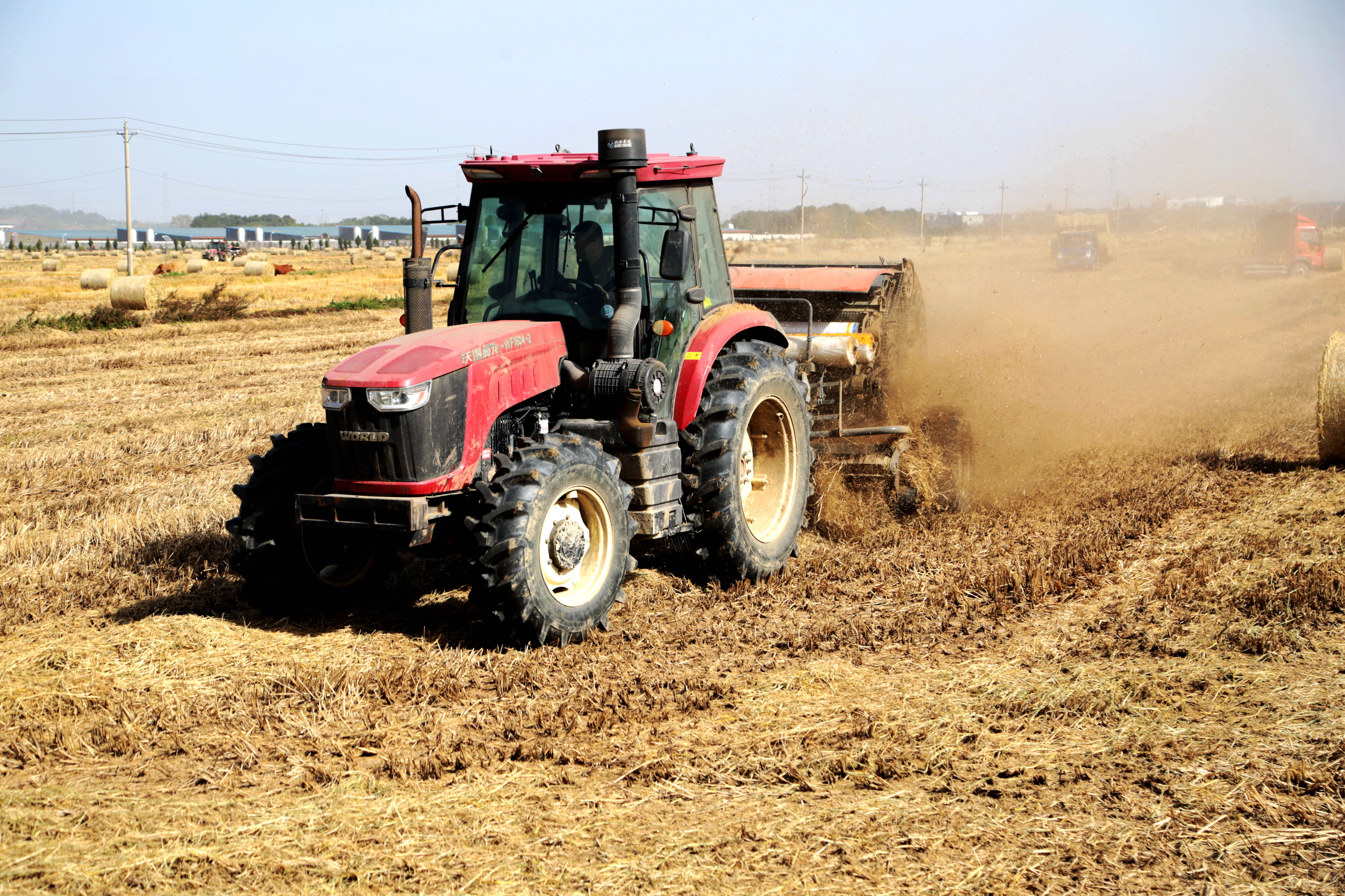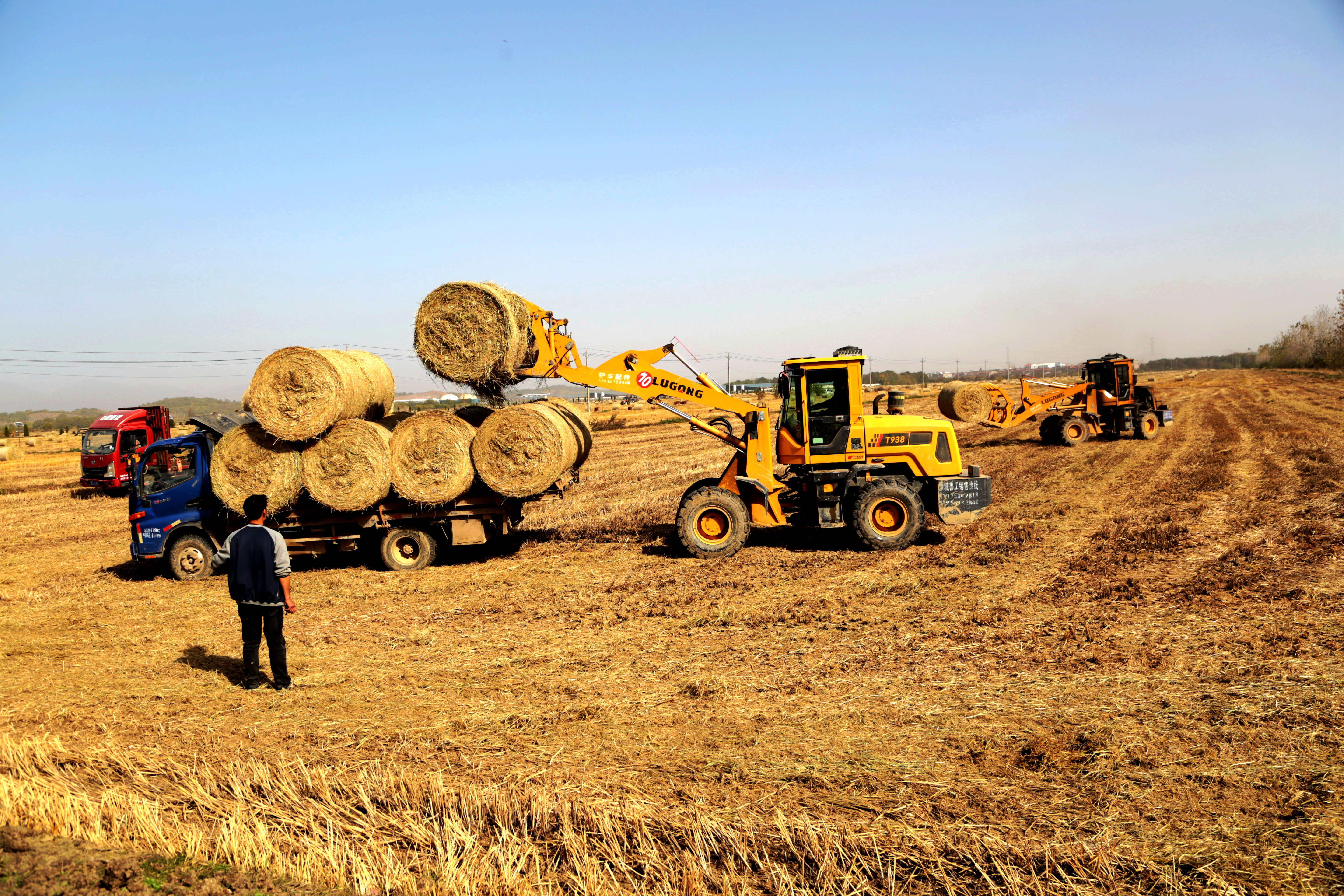 在田间作业现场,各类农机各司其职、高效协作,上演了一场精彩的农机“大合唱”。秸秆回收打捆机如同“田垄梳理师”,在稻田里来回穿梭,将散落的秸秆“吃进”机身,经过压缩、捆扎,一个个紧实的秸秆捆随即成型,既解决了秸秆焚烧污染环境的问题,又能作为饲料或有机肥实现资源化利用。装载机和叉车配合默契,像“搬运工”般将秸秆捆快速装载到农用车上,运往指定回收点。旋耕机则化身“土地深耕者”,凭借强劲的动力将板结的土地深耕细作,破碎土块、平整田面,为小麦种子提供疏松肥沃的生长环境。